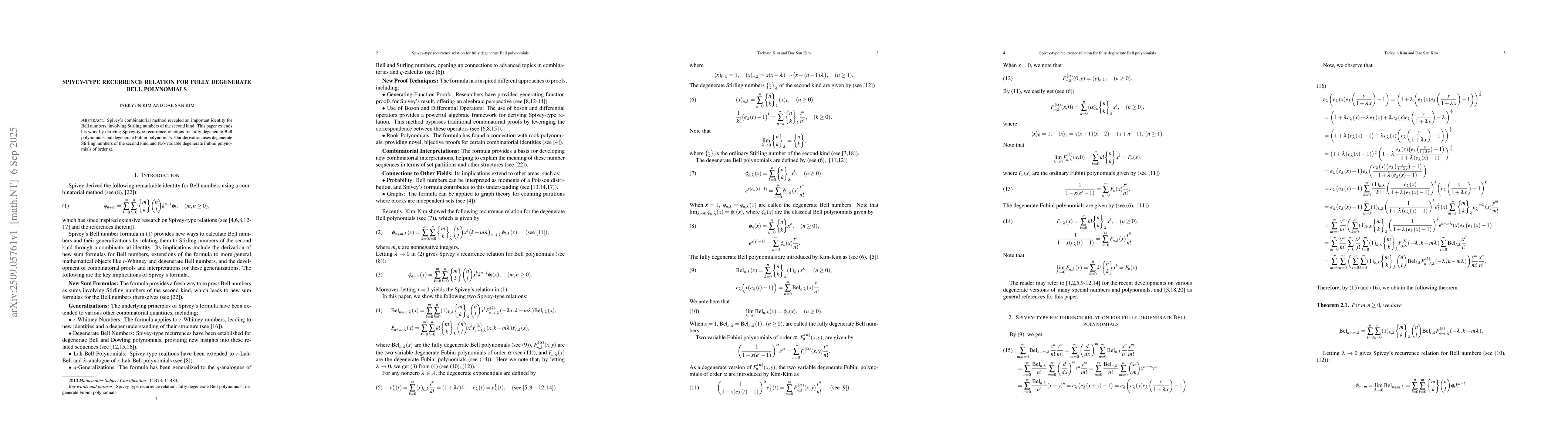Spivey's combinatorial method revealed an important identity for Bell numbers, involving Stirling numbers of the second kind. This paper extends his work by deriving Spivey-type recurrence relations for fully degenerate Bell polynomials and degenerate Fubini polynomials. Our derivation uses degenerate Stirling numbers of the second kind and two-variable degenerate Fubini polynomials of order a.