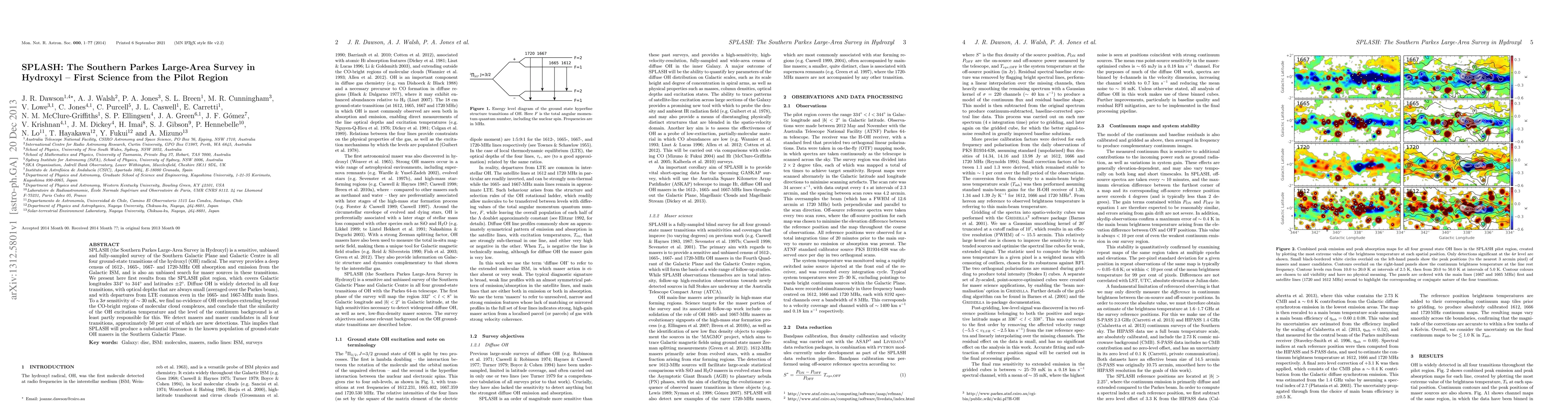 SPLASH is a comprehensive survey of hydroxyl (OH) radical transitions in the Southern Galactic Plane, detecting diffuse OH and new maser sources. Initial results from the pilot region show no OH envelopes extending beyond CO-bright regions, suggesting similar excitation temperatures and background continuum levels.