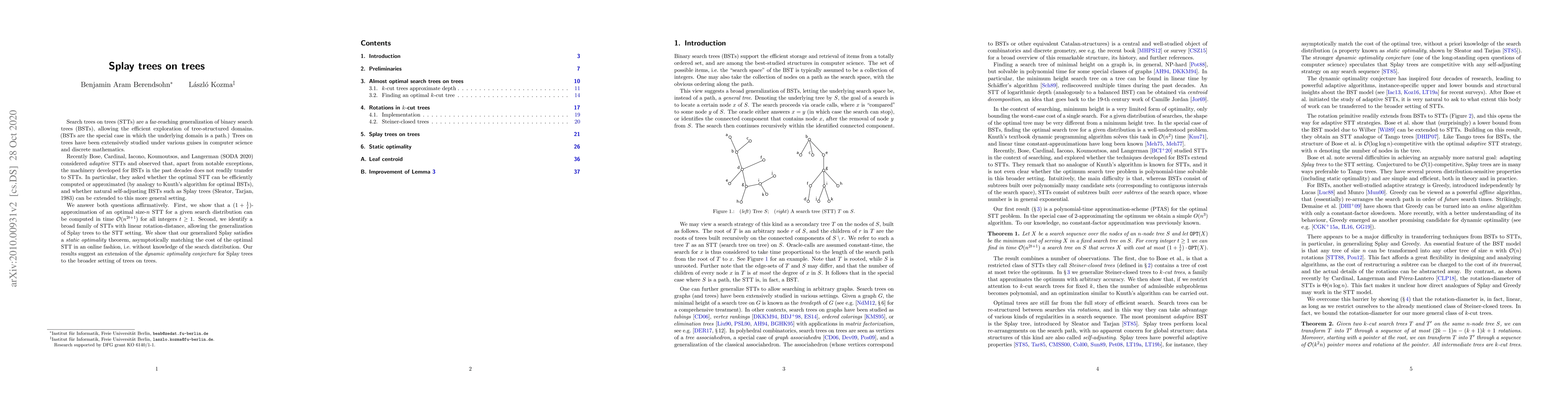 Search trees on trees (STTs) are a far-reaching generalization of binary search trees (BSTs), allowing the efficient exploration of tree-structured domains. (BSTs are the special case in which the underlying domain is a path.) Trees on trees have been extensively studied under various guises in computer science and discrete mathematics. Recently Bose, Cardinal, Iacono, Koumoutsos, and Langerman (SODA 2020) considered adaptive STTs and observed that, apart from notable exceptions, the machinery developed for BSTs in the past decades does not readily transfer to STTs. In particular, they asked whether the optimal STT can be efficiently computed or approximated (by analogy to Knuth's algorithm for optimal BSTs), and whether natural self-adjusting BSTs such as Splay trees (Sleator, Tarjan, 1983) can be extended to this more general setting. We answer both questions affirmatively. First, we show that a $(1 + \frac{1}{t})$-approximation of an optimal size-$n$ STT for a given search distribution can be computed in time $O(n^{2t + 1})$ for all integers $t \geq 1$. Second, we identify a broad family of STTs with linear rotation-distance, allowing the generalization of Splay trees to the STT setting. We show that our generalized Splay satisfies a static optimality theorem, asymptotically matching the cost of the optimal STT in an online fashion, i.e. without knowledge of the search distribution. Our results suggest an extension of the dynamic optimality conjecture for Splay trees to the broader setting of trees on trees.