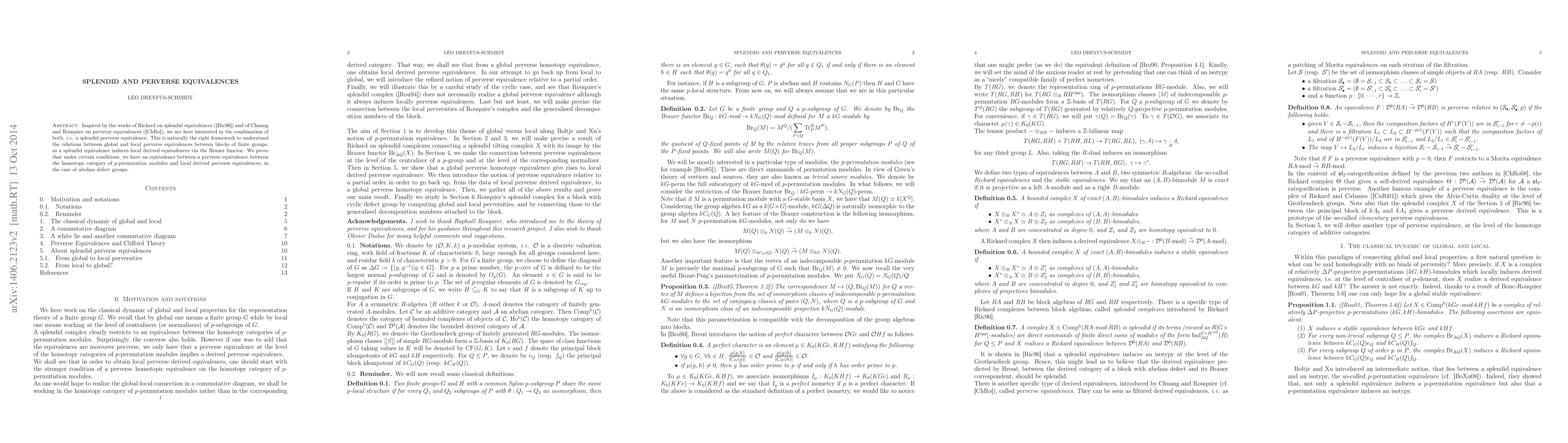 Summary: This paper explores the concept of splendid perverse equivalences, combining Rickard's splendid equivalences with Chuang and Rouquier's perverse equivalences, to understand the relationships between global and local perverse equivalences in finite group blocks. It proves an equivalence under specific conditions between homotopy categories of p-permutation modules and local derived perverse equivalences for abelian defect groups.