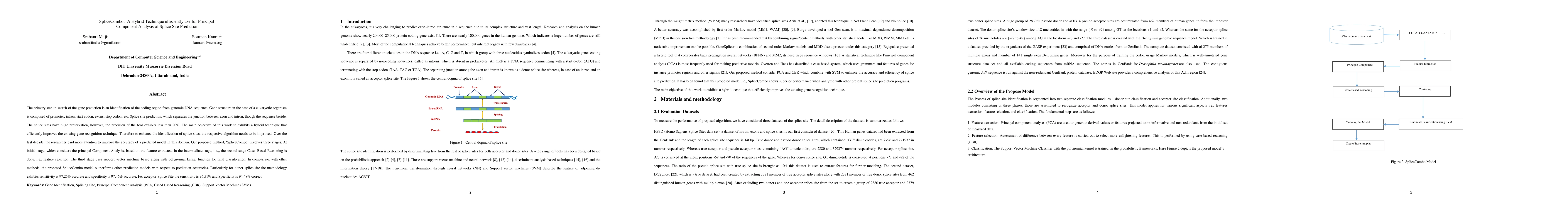 The paper introduces SpliceCombo, a hybrid technique combining Principal Component Analysis, Case-Based Reasoning, and Support Vector Machine for improved splice site prediction. The method achieves high accuracy, with 97.25% sensitivity and 97.46% specificity for donor sites, and 96.51% sensitivity and 94.48% specificity for acceptor sites.