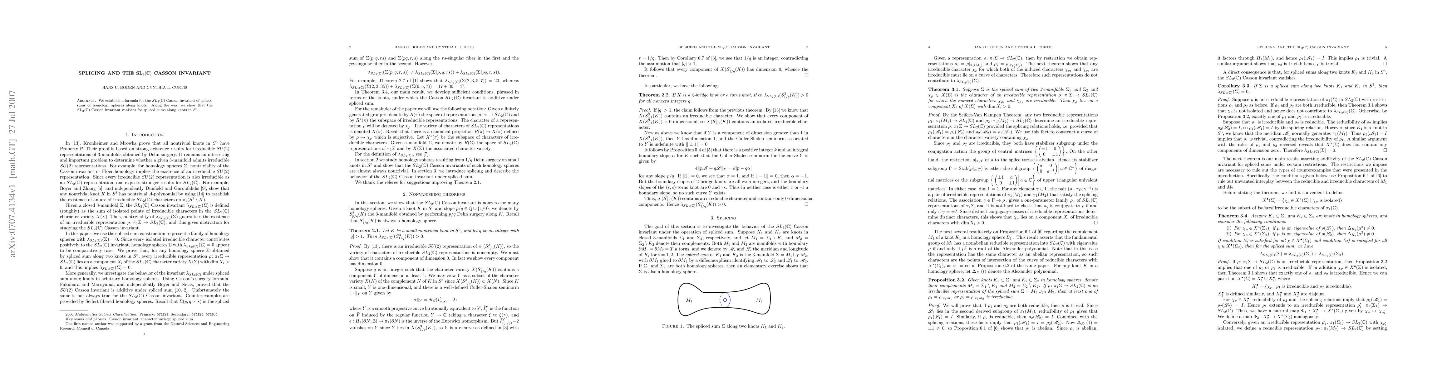 This paper derives a formula for the SL(2,C) Casson invariant of spliced sums of homology spheres along knots and demonstrates that this invariant vanishes for such spliced sums in the 3-sphere.