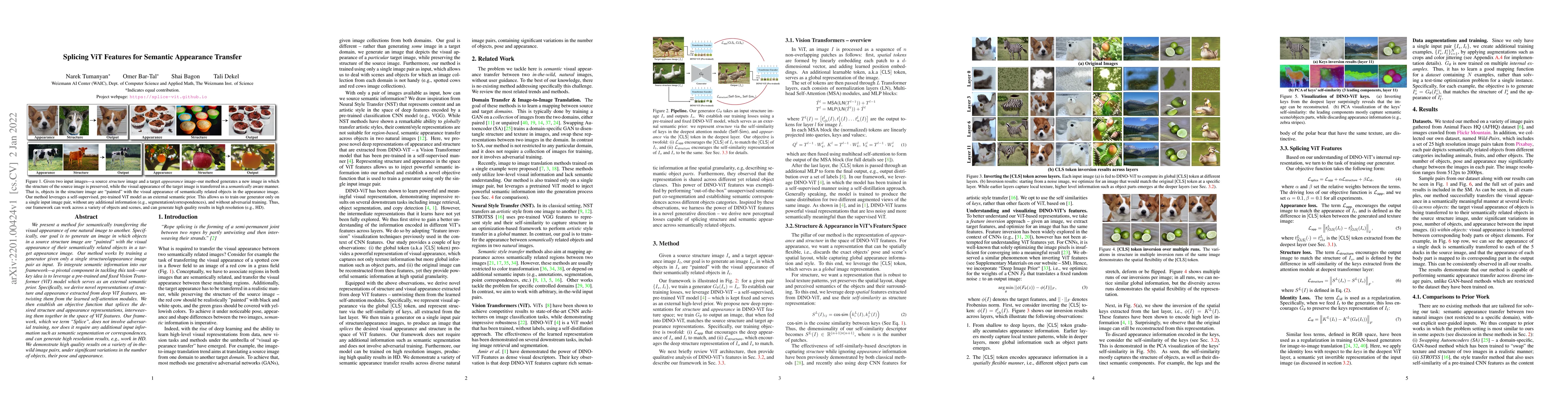 A new method called Splice uses pre-trained Vision Transformer (ViT) features to transfer the appearance of objects in one image to another, generating high-quality results without requiring additional input information or adversarial training.