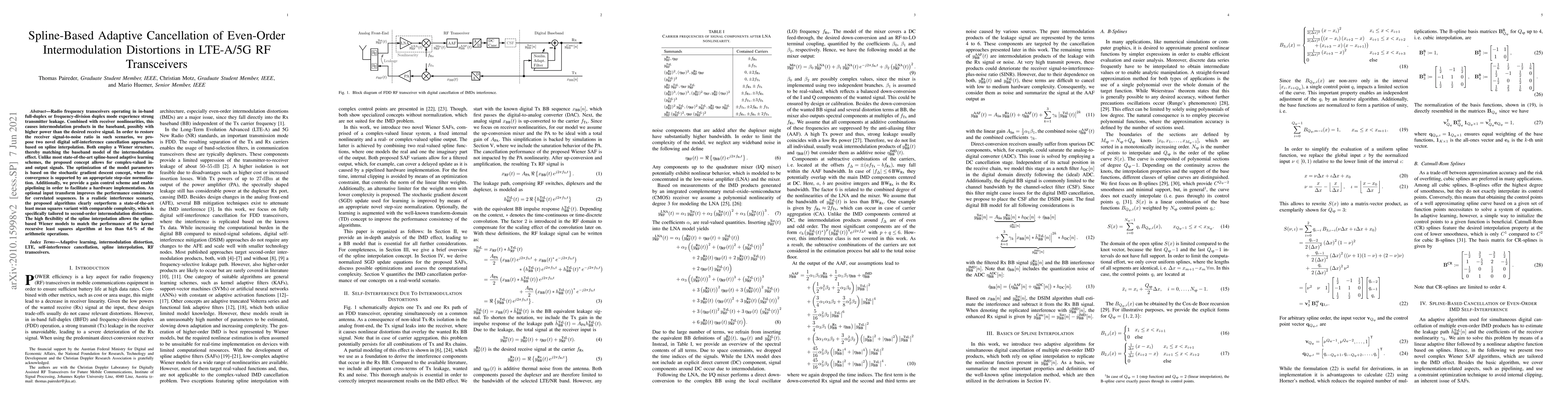 Radio frequency transceivers operating in in-band full-duplex or frequency-division duplex mode experience strong transmitter leakage. Combined with receiver nonlinearities, this causes intermodulation products in the baseband, possibly with higher power than the desired receive signal. In order to restore the receiver signal-to-noise ratio in such scenarios, we propose two novel digital self-interference cancellation approaches based on spline interpolation. Both employ a Wiener structure, thereby matching the baseband model of the intermodulation effect. Unlike most state-of-the-art spline-based adaptive learning schemes, the proposed concept allows for complex-valued in- and out-put signals. The optimization of the model parameters is based on the stochastic gradient descent concept, where the convergence is supported by an appropriate step-size normalization. Additionally, we provide a gain control scheme and enable pipelining in order to facilitate a hardware implementation. An optional input transform improves the performance consistency for correlated sequences. In a realistic interference scenario, the proposed algorithms clearly outperform a state-of-the-art least mean squares variant with comparable complexity, which is specifically tailored to second-order intermodulation distortions. The high flexibility of the spline interpolation allows the spline-based Wiener models to match the performance of the kernel recursive least squares algorithm at less than 0.6% of the arithmetic operations.