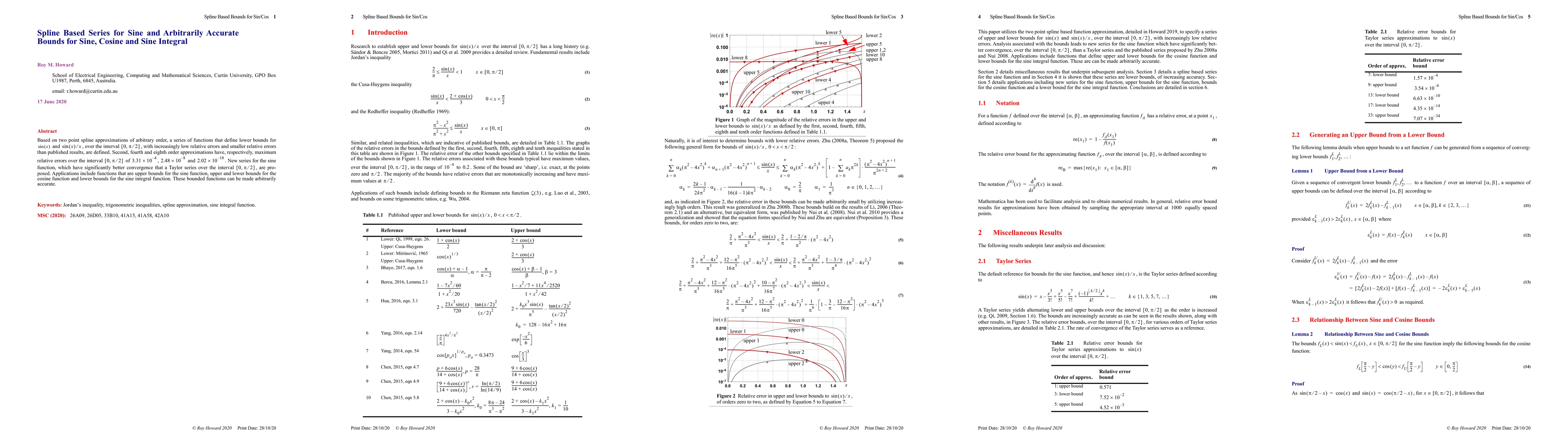 Based on two point spline approximations of arbitrary order, a series of functions that define lower bounds for sin(x) and sin(x)/x, over the interval [0,Pi/2], with increasingly low relative errors and smaller relative errors than published results, are defined. Second, fourth and eighth order approximations have, respectively, maximum relative errors over the interval [0,Pi/2] of 3.31 x 10-4, 2.48 x 10-8, and 2.02 x 10-18. New series for the sine function, which have significantly better convergence that a Taylor series over the interval [0,Pi/2], are proposed. Applications include functions that are upper bounds for the sine function, upper and lower bounds for the cosine function and lower bounds for the sine integral function. These bounded functions can be made arbitrarily accurate.