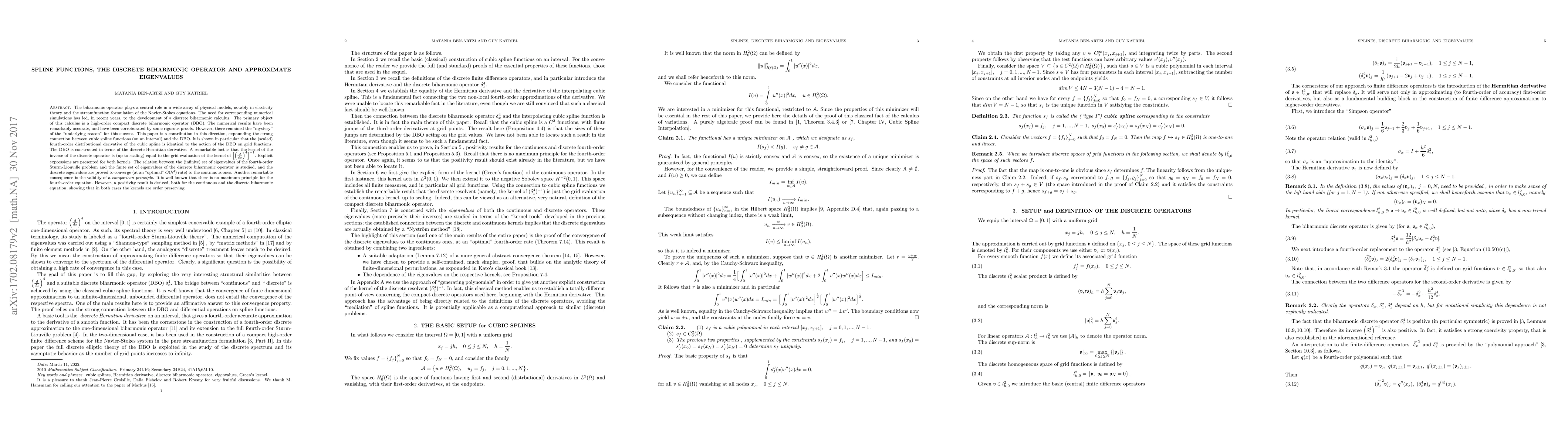 This paper explores the connection between cubic spline functions and the high-order compact discrete biharmonic operator (DBO), demonstrating that the DBO acts on grid functions identically to the scaled fourth-order derivative of cubic splines. It also proves the convergence of discrete eigenvalues to continuous ones at an optimal rate and establishes a positivity result for both continuous and discrete biharmonic equations.