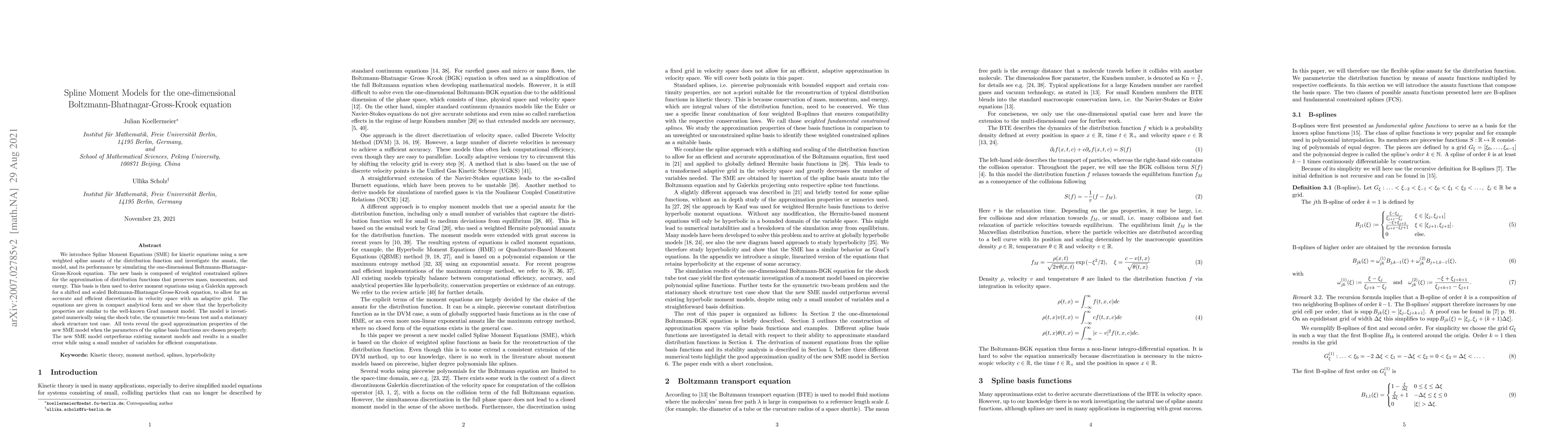 This paper introduces Spline Moment Equations (SME) for kinetic equations using a weighted spline ansatz that preserves mass, momentum, and energy. The new model, derived via a Galerkin approach, is shown to outperform existing moment models with smaller errors and efficient computations.