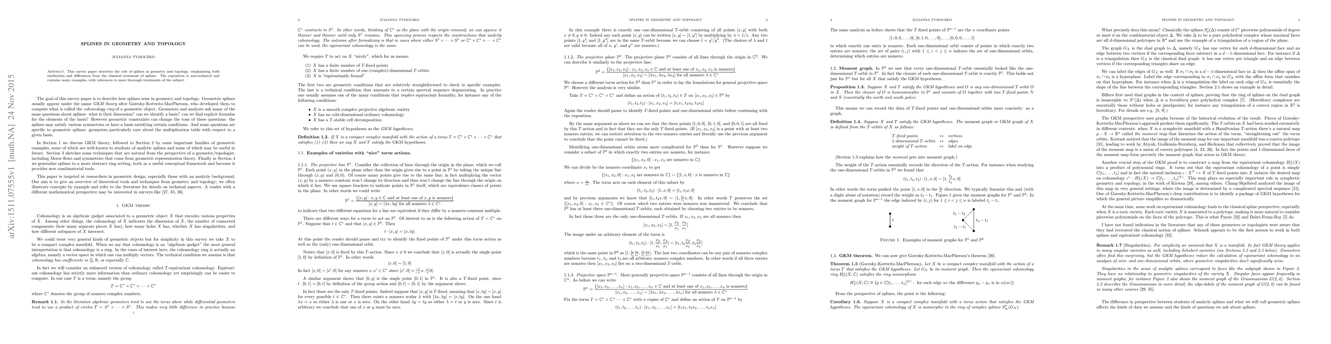 This paper explores the application of splines in geometry and topology, highlighting their unique characteristics compared to traditional spline usage. It offers a non-technical overview with numerous examples and references for further study.