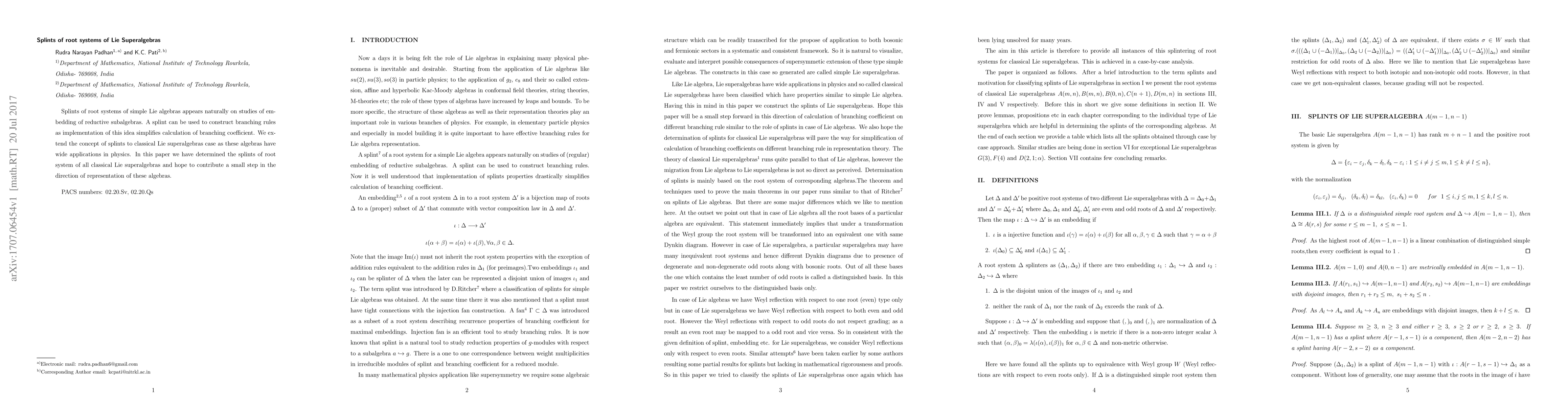Splints of root system of simple lie algebras appears naturally on studies of embedding of reductive subalgebras. A splint can be used to construct a branching rules as implementation of this idea simplifies calculation of branching coefficient. We extend the concept of splints to classical lie superalgebras cases as these algebras have wide application in physics.