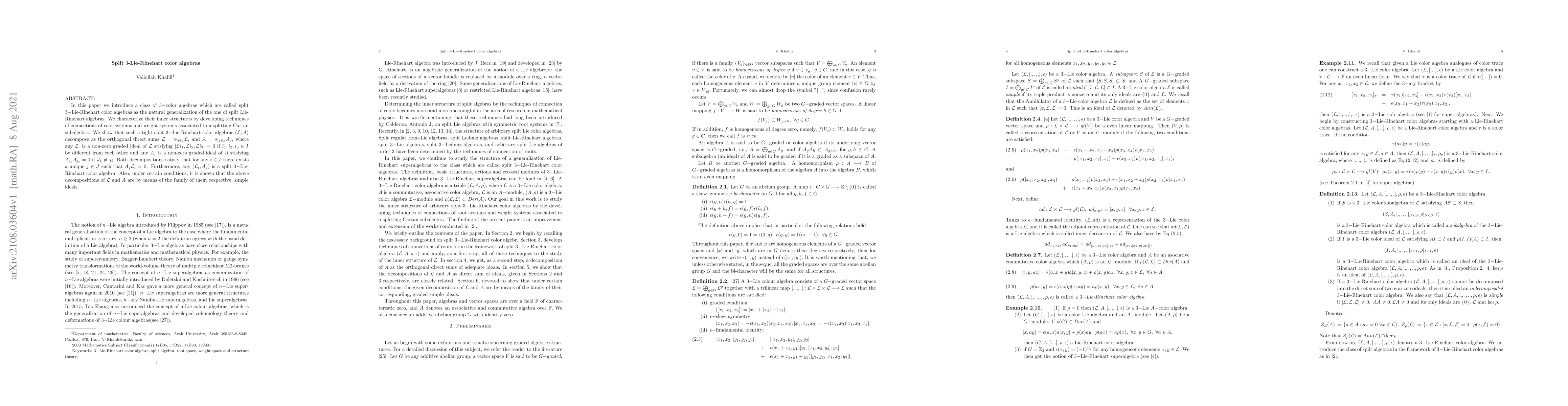The introduction and characterization of split 3-Lie-Rinehart color algebras, along with conditions for them to be tight and their decomposition properties.