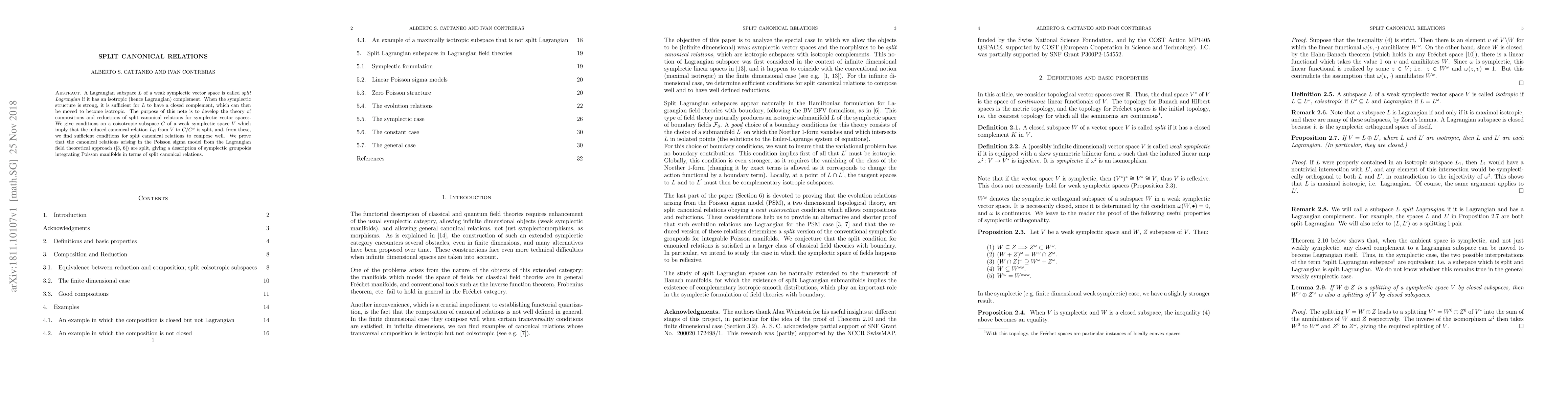 Research develops theory for splitting canonical relations in symplectic vector spaces, allowing for compositions and reductions, with implications for Poisson sigma models and integration of Poisson manifolds.