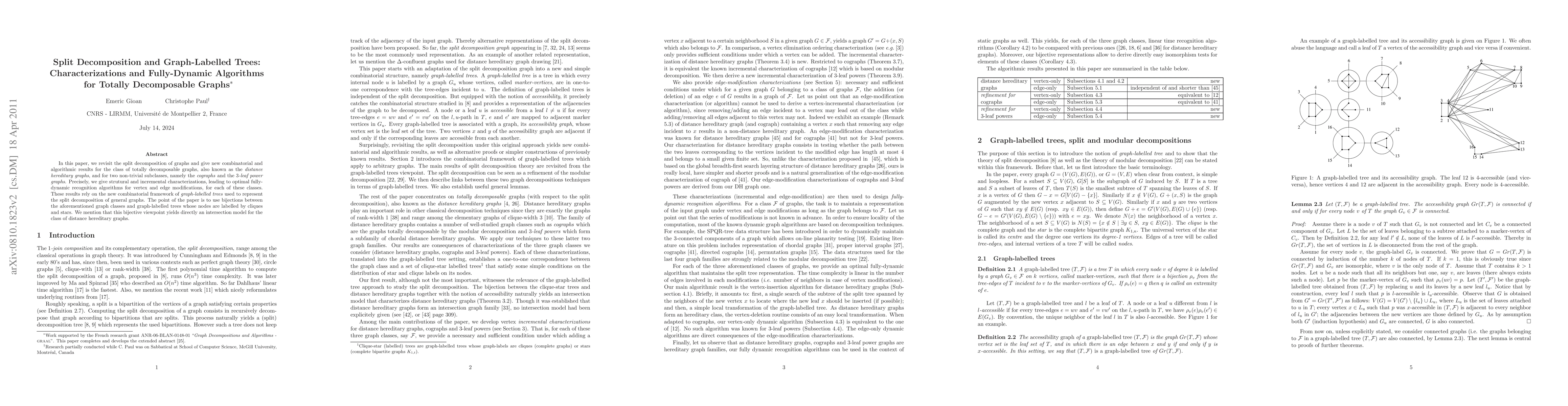 This paper presents new combinatorial and algorithmic results for totally decomposable graphs, including cographs and 3-leaf power graphs, using a new graph-labelled tree framework for split decomposition. It also provides optimal fully-dynamic recognition algorithms for vertex and edge modifications, and resolves an open problem regarding an intersection model for distance hereditary graphs.