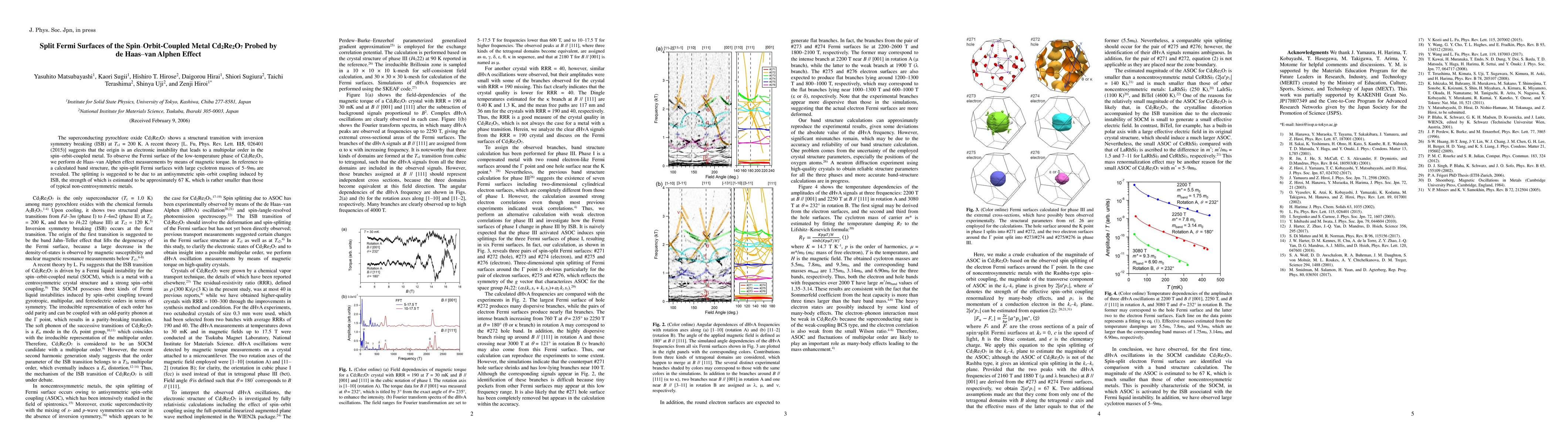 The research paper reveals split Fermi surfaces in the metal Cd2Re2O7 due to inversion symmetry breaking, with large cyclotron masses indicating strong spin-orbit coupling. The observed phenomenon is estimated to have a strength of approximately 67 K.