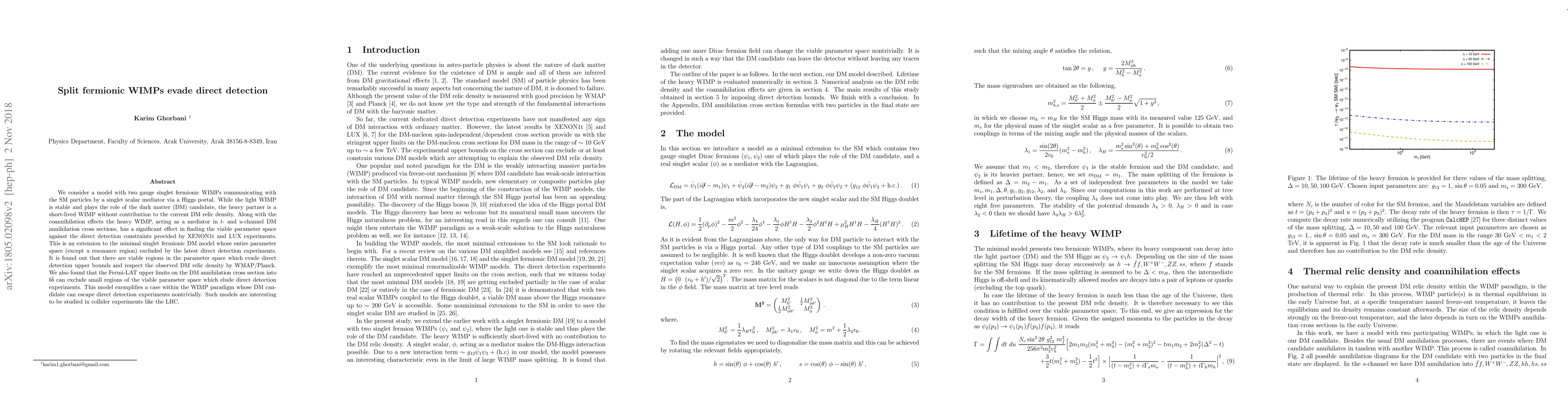 This paper explores a model with two fermionic WIMPs where the light WIMP serves as dark matter, while the heavy WIMP evades direct detection and does not contribute to the current dark matter relic density. The study finds viable regions in the parameter space that satisfy observed dark matter density and avoid direct detection constraints.