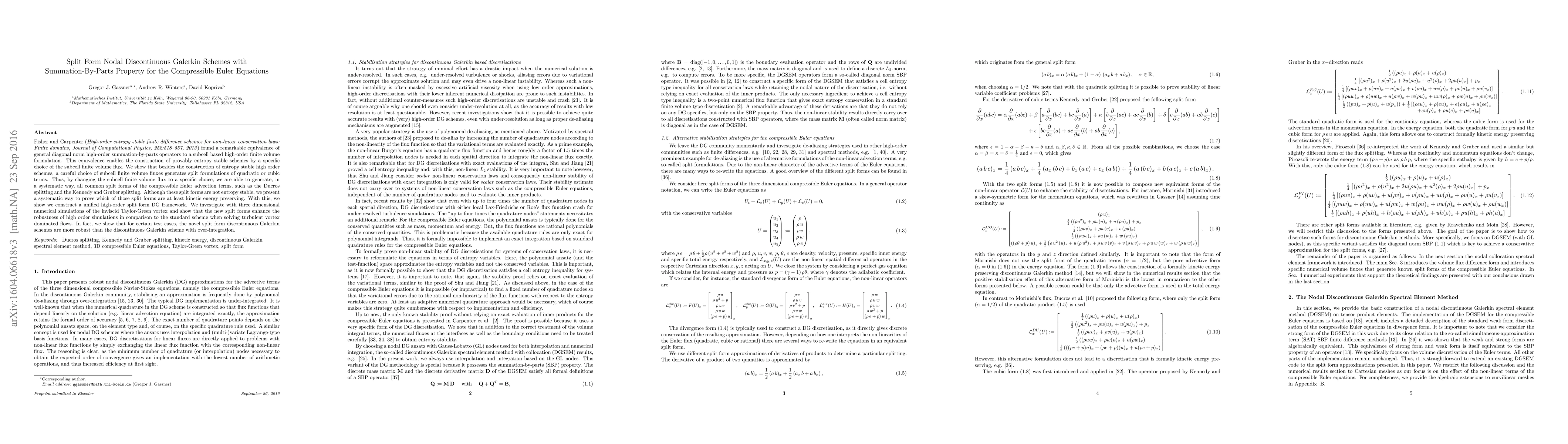 This paper develops a unified high-order split form nodal discontinuous Galerkin scheme for the compressible Euler equations using summation-by-parts operators. It systematically generates various split forms of advection terms, proving kinetic energy preservation for some, and demonstrates enhanced robustness in turbulent flow simulations compared to standard schemes.