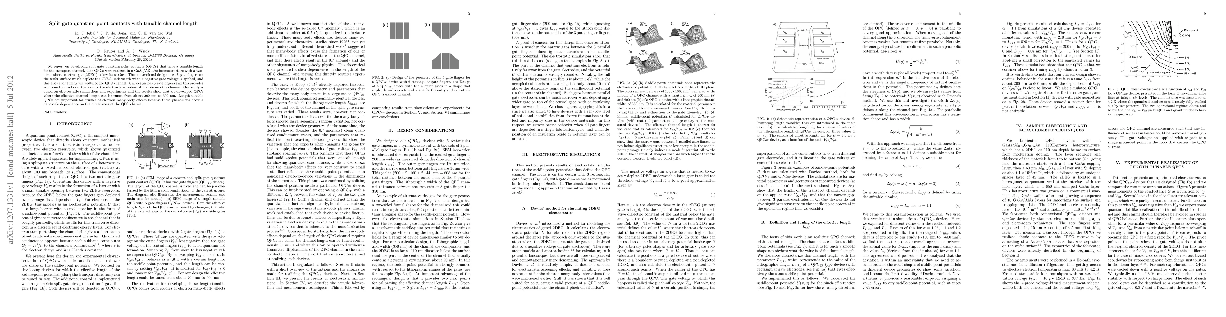This paper develops split-gate quantum point contacts (QPCs) with tunable channel length in a GaAs/AlGaAs heterostructure, achieving effective channel length tuning from 200 nm to 600 nm using six gate fingers for enhanced electrostatic control. The tunable QPCs are crucial for studying electron many-body effects that depend on nanoscale channel dimensions.