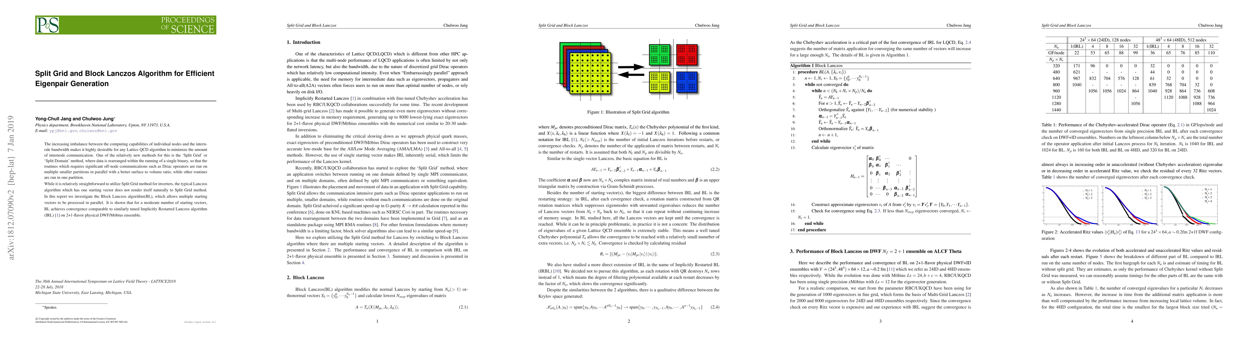 This paper explores the Block Lanczos algorithm (BL) for efficient eigenpair generation in Lattice QCD, addressing the challenge of minimizing internode communication. It demonstrates that BL, which allows multiple starting vectors, achieves comparable convergence to the Implicitly Restarted Lanczos algorithm (IRL) for a moderate number of starting vectors.