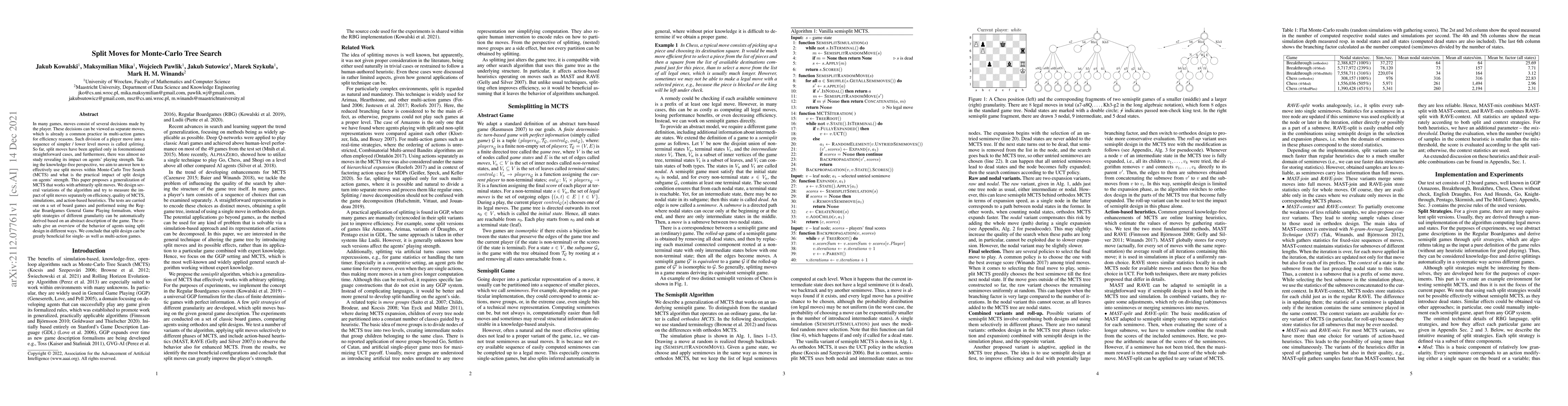 In many games, moves consist of several decisions made by the player. These decisions can be viewed as separate moves, which is already a common practice in multi-action games for efficiency reasons. Such division of a player move into a sequence of simpler / lower level moves is called \emph{splitting}. So far, split moves have been applied only in forementioned straightforward cases, and furthermore, there was almost no study revealing its impact on agents' playing strength. Taking the knowledge-free perspective, we aim to answer how to effectively use split moves within Monte-Carlo Tree Search (MCTS) and what is the practical impact of split design on agents' strength. This paper proposes a generalization of MCTS that works with arbitrarily split moves. We design several variations of the algorithm and try to measure the impact of split moves separately on efficiency, quality of MCTS, simulations, and action-based heuristics. The tests are carried out on a set of board games and performed using the Regular Boardgames General Game Playing formalism, where split strategies of different granularity can be automatically derived based on an abstract description of the game. The results give an overview of the behavior of agents using split design in different ways. We conclude that split design can be greatly beneficial for single- as well as multi-action games.