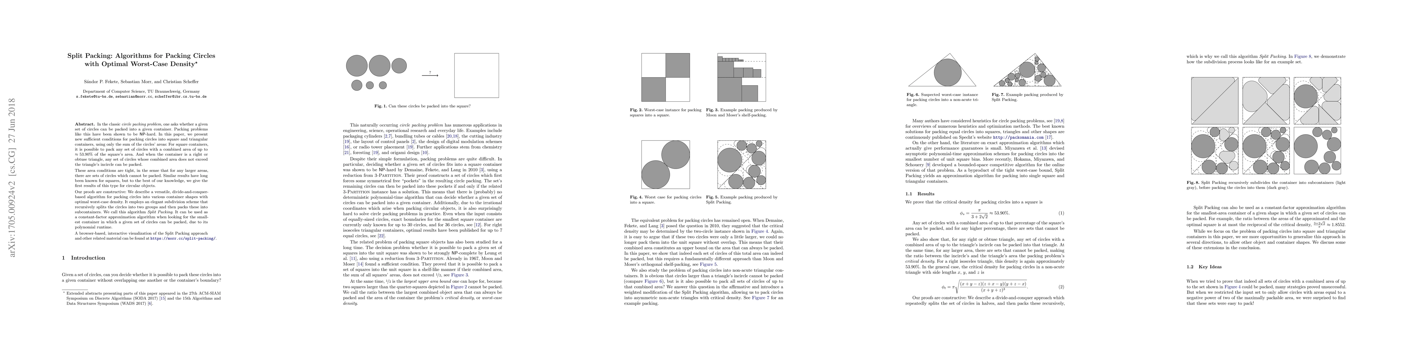 This paper introduces "Split Packing," a new algorithm for optimally packing circles into square and triangular containers based on the sum of the circles' areas. The algorithm achieves optimal worst-case density and provides a constructive, divide-and-conquer method for packing circles efficiently.
