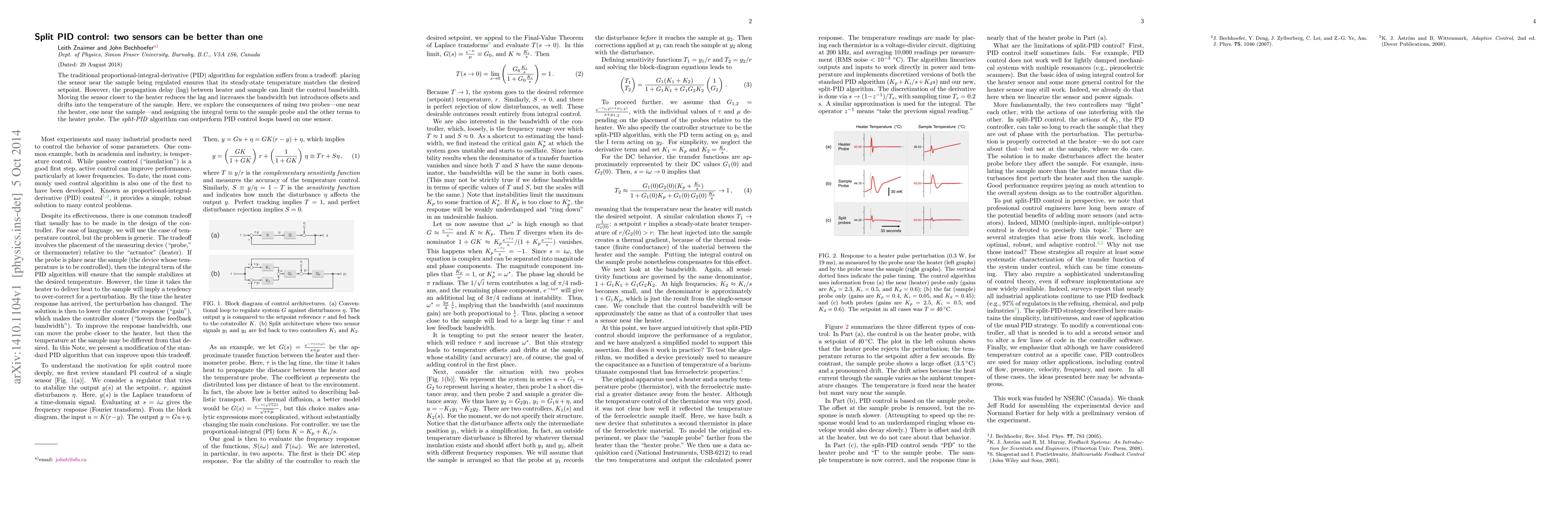 This research proposes a 'split-PID' control method using two sensors, one near the heater and another near the sample. By assigning the integral term to the sample probe and the other terms to the heater probe, the split-PID algorithm outperforms traditional PID control loops, overcoming the tradeoff between sensor placement and control bandwidth.