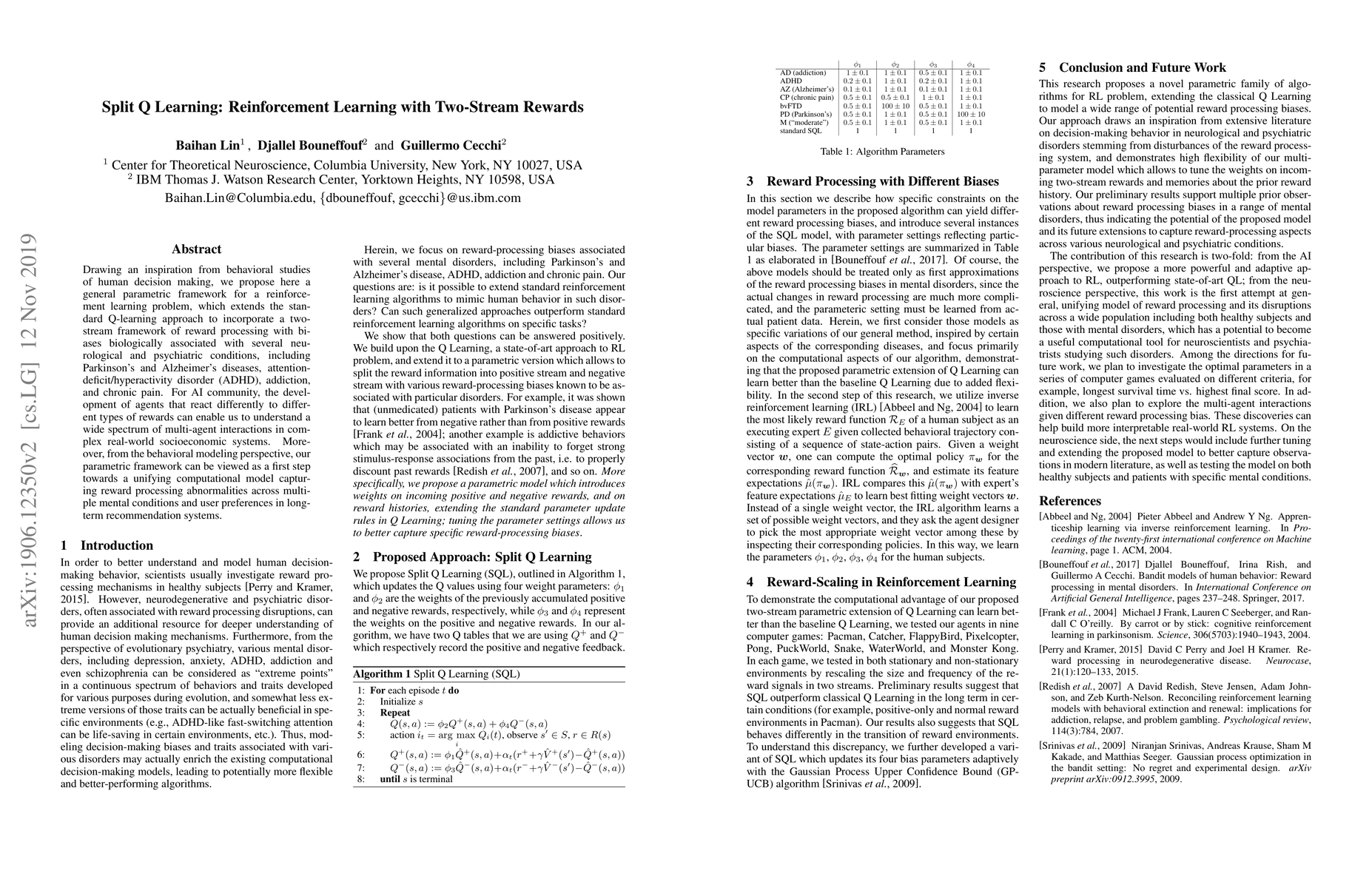 Drawing an inspiration from behavioral studies of human decision making, we propose here a general parametric framework for a reinforcement learning problem, which extends the standard Q-learning approach to incorporate a two-stream framework of reward processing with biases biologically associated with several neurological and psychiatric conditions, including Parkinson's and Alzheimer's diseases, attention-deficit/hyperactivity disorder (ADHD), addiction, and chronic pain. For AI community, the development of agents that react differently to different types of rewards can enable us to understand a wide spectrum of multi-agent interactions in complex real-world socioeconomic systems. Moreover, from the behavioral modeling perspective, our parametric framework can be viewed as a first step towards a unifying computational model capturing reward processing abnormalities across multiple mental conditions and user preferences in long-term recommendation systems.