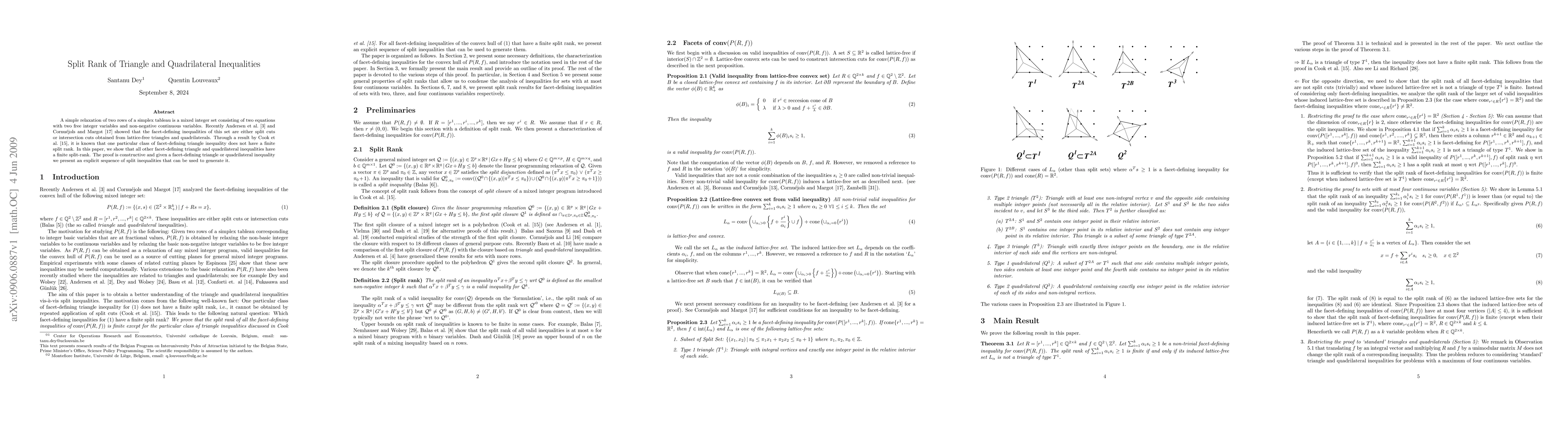 A simple relaxation of two rows of a simplex tableau is a mixed integer set consisting of two equations with two free integer variables and non-negative continuous variables. Recently Andersen, Louveaux, Weismantel and Wolsey (2007) and Cornuejols and Margot (2008) showed that the facet-defining inequalities of this set are either split cuts or intersection cuts obtained from lattice-free triangles and quadrilaterals. Through a result by Cook, Kannan and Schrijver (1990), it is known that one particular class of facet-defining triangle inequality does not have a finite split rank. In this paper, we show that all other facet-defining triangle and quadrilateral inequalities have a finite split-rank. The proof is constructive and given a facet-defining triangle or quadrilateral inequality we present an explicit sequence of split inequalities that can be used to generate it.