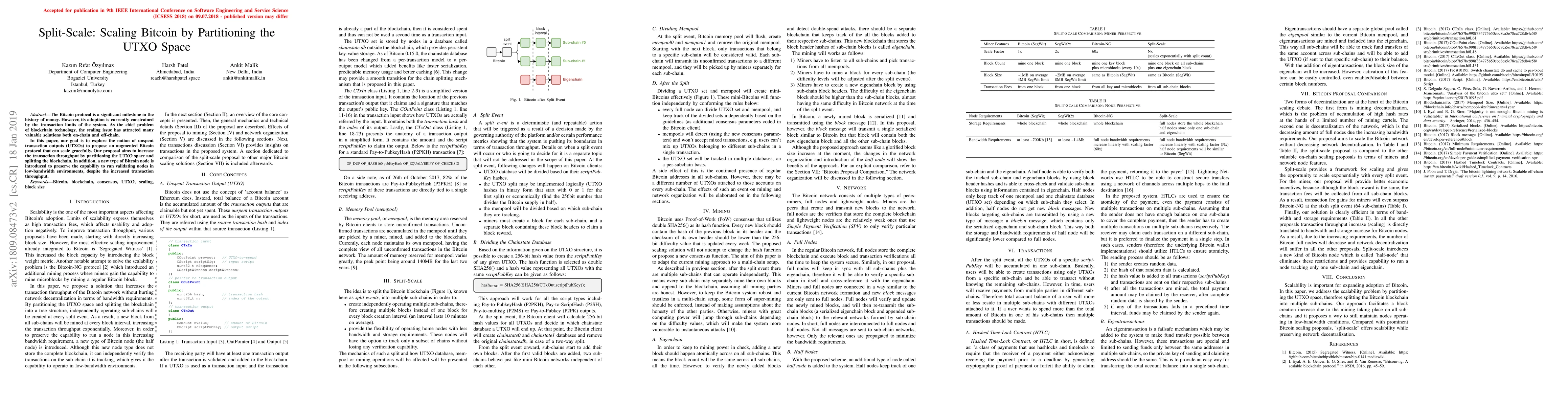 The Bitcoin protocol is a significant milestone in the history of money. However, its adoption is currently constrained by the transaction limits of the system. As the chief problem of blockchain technology, the scaling issue has attracted many valuable solutions both on-chain and off-chain. In this paper, our goal is to explore the notion of unspent transaction outputs (UTXOs) to propose an augmented Bitcoin protocol that can scale gracefully. Our proposal aims to increase the transaction throughput by partitioning the UTXO space and splitting the blockchain. In addition, a new type of Bitcoin node is introduced to preserve the capability to run validating nodes in low-bandwidth environments, despite the increased transaction throughput.