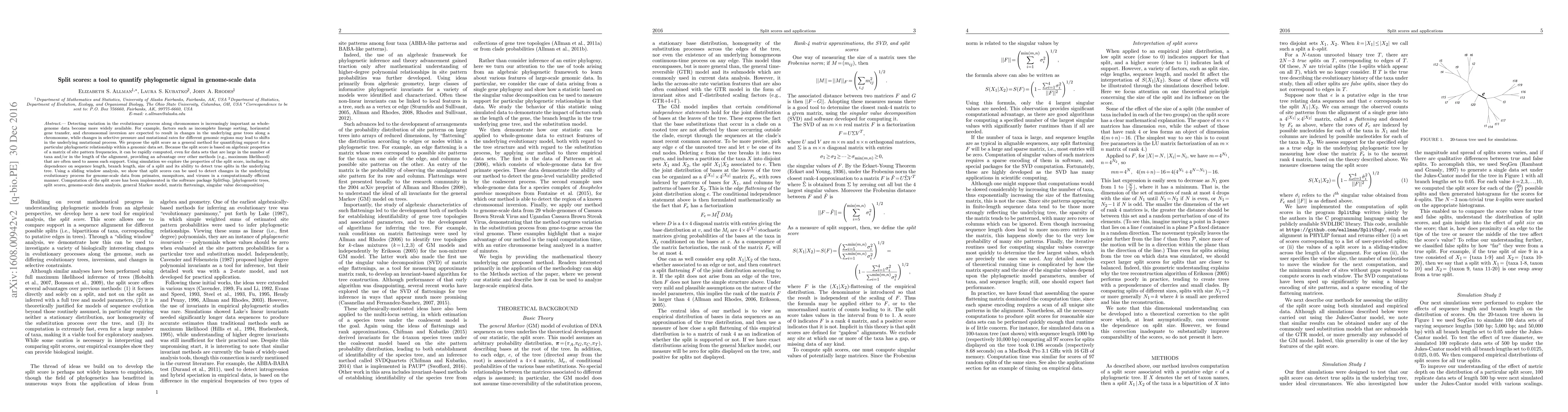 The paper introduces the split score as a rapid computational tool to quantify phylogenetic signal in large genome-scale datasets, enabling detection of evolutionary process variations. The split score, implemented in SplitSup, is shown to efficiently identify changes in evolutionary dynamics across different organisms.