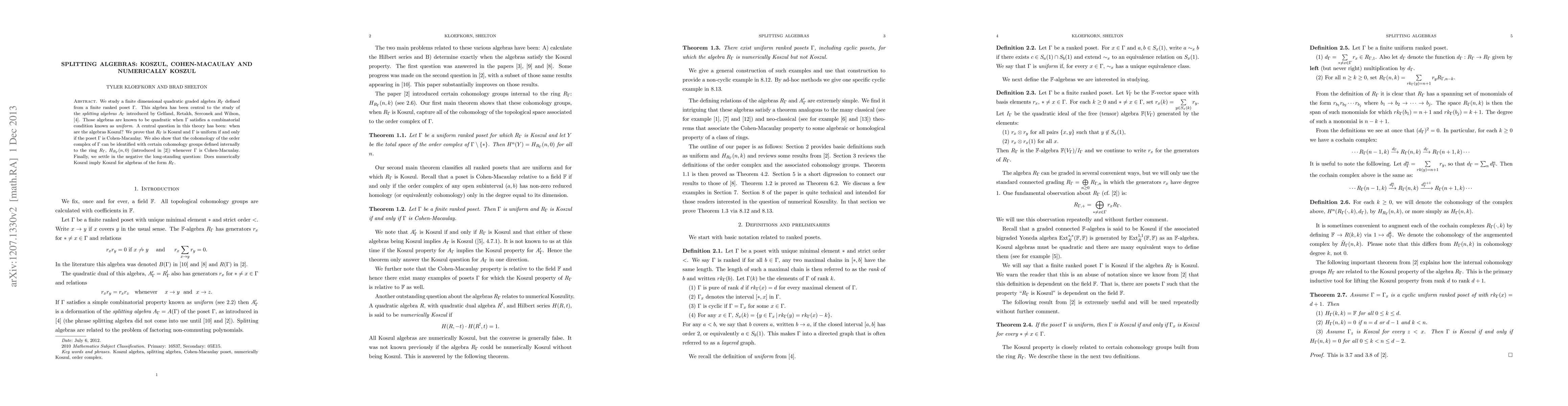 We study a finite dimensional quadratic graded algebra R defined from a finite ranked poset. This algebra has been central to the study of the splitting algebra of the poset, A, as introduced by Gelfand, Retakh, Serconek and Wilson . The algebra A is known to be quadratic when the poset satisfies a combinatorial condition known as uniform, and R is the quadratic dual of an associated graded algebra of A. We prove that R is Koszul and the poset is uniform if and only if the poset is Cohen-Macaulay. Koszulity of R implies Koszulity of A. We also show that when R is Koszul, the cohomology of the order complex of the poset can be identified with certain cohomology groups defined internally to the ring R. Finally, we settle in the negative the long-standing question: Does numerically Koszul imply Koszul for algebras of the form R?