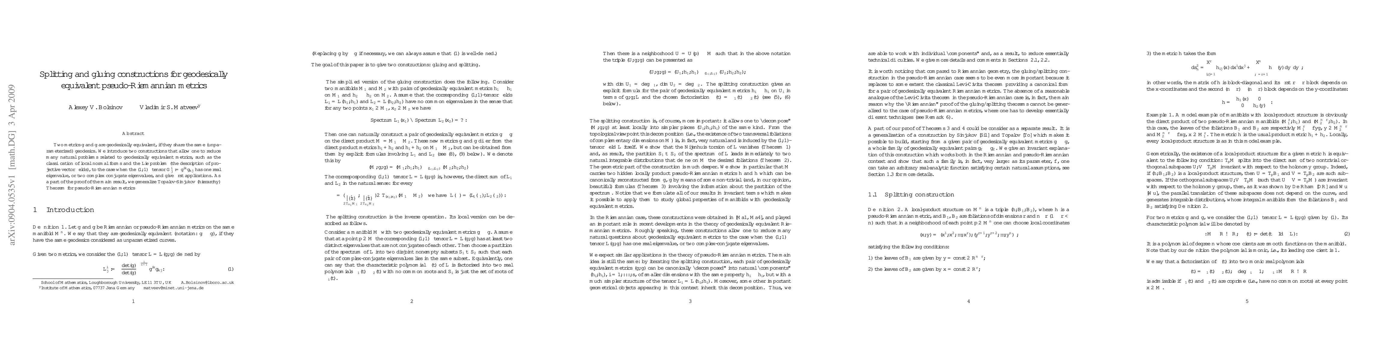 Two metrics $g $ and $\bar g$ are geodesically equivalent, if they share the same (unparameterized) geodesics. We introduce two constructions that allow one to reduce many natural problems related to geodesically equivalent metrics, such as the classification of local normal forms and the Lie problem (the description of projective vector fields), to the case when the (1,1)-tensor $G^i_j:= g^{ik} \bar g_{kj}$ has one real eigenvalue, or two complex conjugate eigenvalues, and give first applications. As a part of the proof of the main result, we generalize Topalov-Sinjukov (hierarchy) Theorem for pseudo-Riemannian metrics