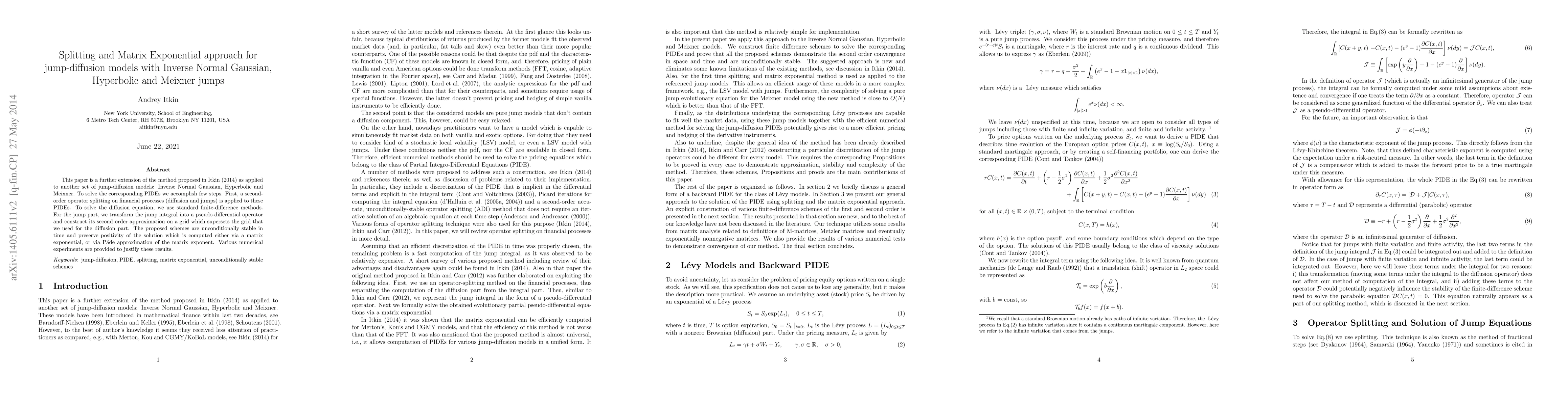 This paper extends the splitting and matrix exponential method to jump-diffusion models with Inverse Normal Gaussian, Hyperbolic, and Meixner jumps. It employs operator splitting, finite-difference methods for diffusion, and pseudo-differential operators for jumps, ensuring stability and positivity through matrix exponential computations.