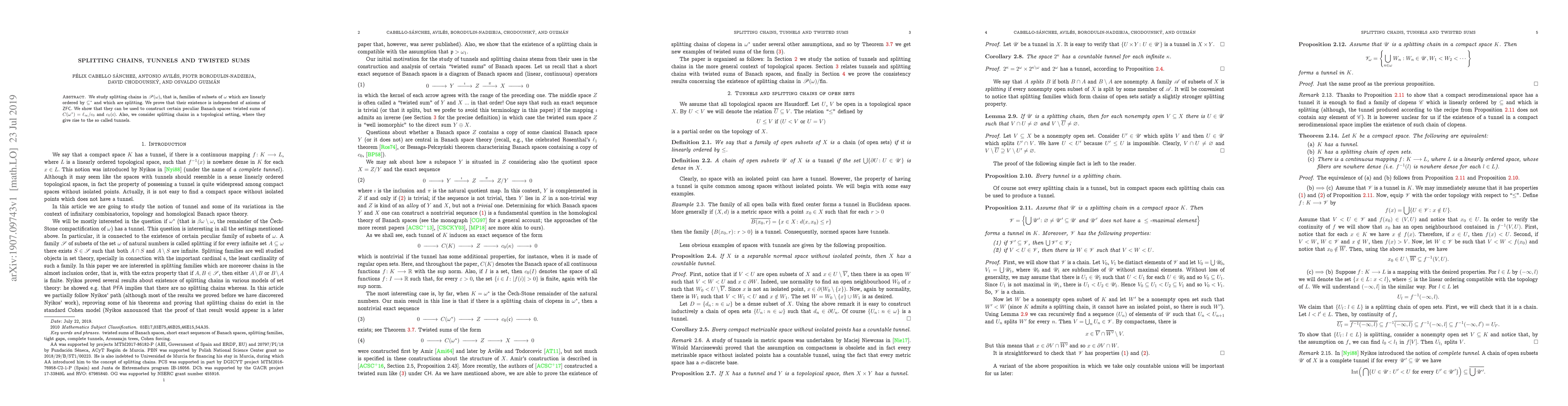 Researchers investigate splitting chains in set theory, revealing their existence is independent of ZFC axioms, and using them to construct unusual Banach spaces.