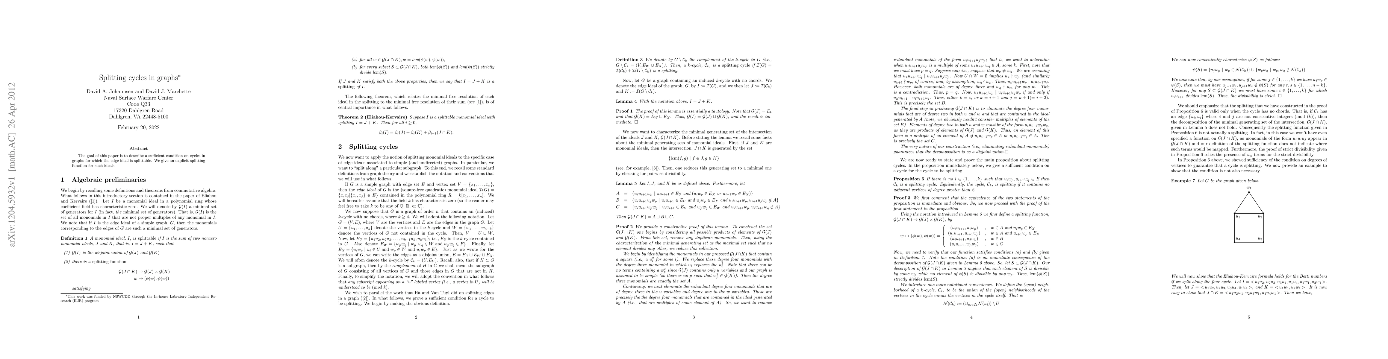 The goal of this paper is to describe a sufficient condition on cycles in graphs for which the edge ideal is splittable. We give an explicit splitting function for such ideals.