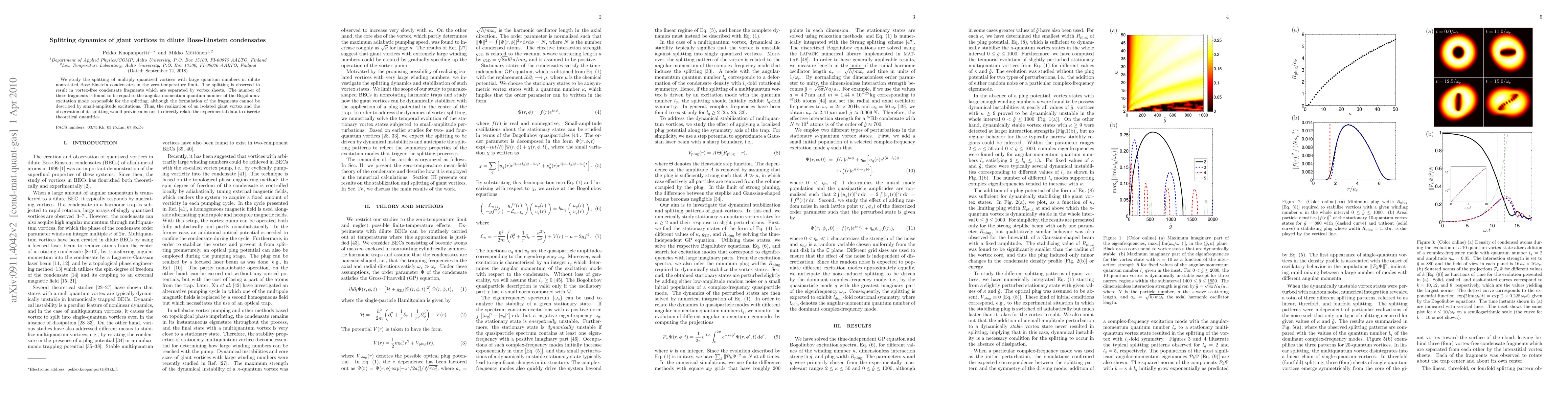 This paper investigates the splitting of giant vortices in dilute Bose-Einstein condensates, revealing that the process results in vortex-free fragments separated by vortex sheets. The number of fragments corresponds to the angular-momentum quantum number, indicating a direct link between experimental observations and theoretical predictions.