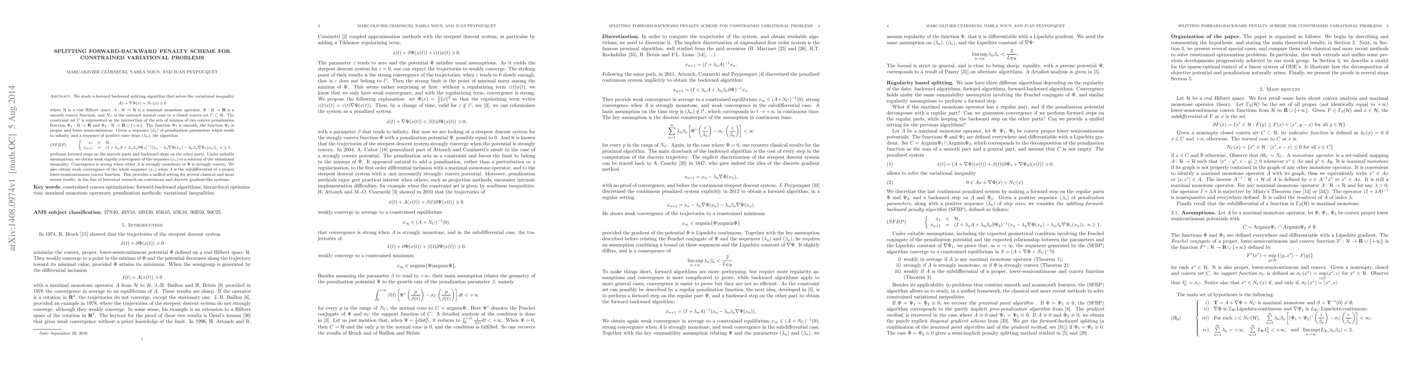 We study a forward backward splitting algorithm that solves the variational inequality \begin{equation*} A x +\nabla \Phi(x)+ N_C (x) \ni 0 \end{equation*} where $H$ is a real Hilbert space, $A: H\rightrightarrows H$ is a maximal monotone operator, $\Phi: H\to\mathbb{R}$ is a smooth convex function, and $N_C$ is the outward normal cone to a closed convex set $C\subset H$. The constraint set $C$ is represented as the intersection of the sets of minima of two convex penalization function $\Psi_1:H\to\mathbb{R}$ and $\Psi_2: H\to\mathbb{R}\cup \{+\infty\}$. The function $\Psi_1$ is smooth, the function $\Psi_2$ is proper and lower semicontinuous. Given a sequence $(\beta_n)$ of penalization parameters which tends to infinity, and a sequence of positive time steps $(\lambda_n)$, the algorithm $$ \left\{\begin{array}{rcl} x_1 & \in & H,\\ x_{n+1} & = & (I+\lambda_n A+\lambda_n\beta_n\partial\Psi_2)^{-1}(x_n-\lambda_n\nabla\Phi(x_n)-\lambda_n\beta_n\nabla\Psi_1(x_n)),\ n\geq 1. \end{array}\right. $$ performs forward steps on the smooth parts and backward steps on the other parts. Under suitable assumptions, we obtain weak ergodic convergence of the sequence $(x_n)$ to a solution of the variational inequality. Convergence is strong when either $A$ is strongly monotone or $\Phi$ is strongly convex. We also obtain weak convergence of the whole sequence $(x_n)$ when $A$ is the subdifferential of a proper lower-semicontinuous convex function. This provides a unified setting for several classical and more recent results, in the line of historical research on continuous and discrete gradient-like systems.