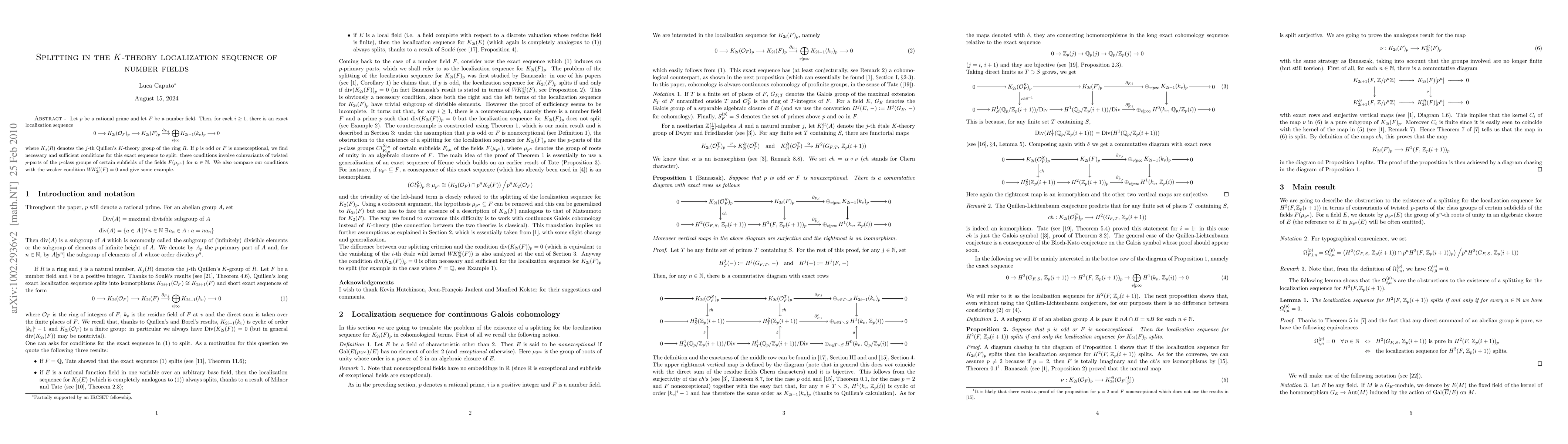 Let p be a rational prime and let F be a number field. Then, for each i>0, there is a short exact localization sequence for K_{2i}(F). If p is odd or F is nonexceptional, we find necessary and sufficient conditions for this exact sequence to split: these conditions involve coinvariants of twisted p-parts of the p-class groups of certain subfields of the fields F(\mu_{p^n}) for n\in N. We also compare our conditions with the weaker condition WK^{et}_{2i}(F)=0 and give some example.