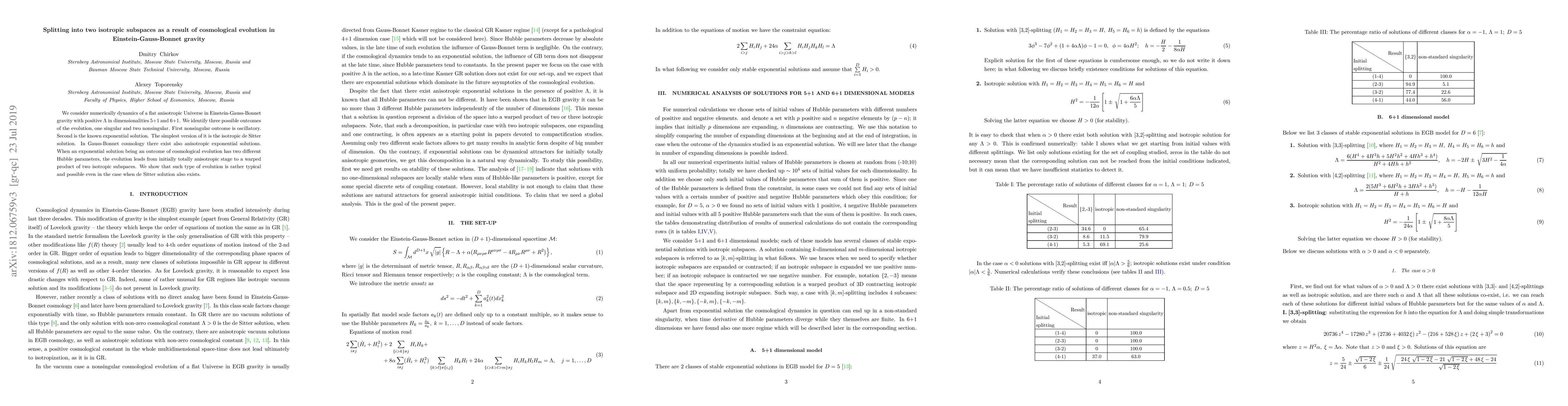 This paper explores the dynamics of a flat anisotropic universe in Einstein-Gauss-Bonnet gravity, identifying three possible evolution outcomes: one singular and two nonsingular. The nonsingular outcomes include oscillatory and exponential solutions, leading to the emergence of two isotropic subspaces from an initially anisotropic state.