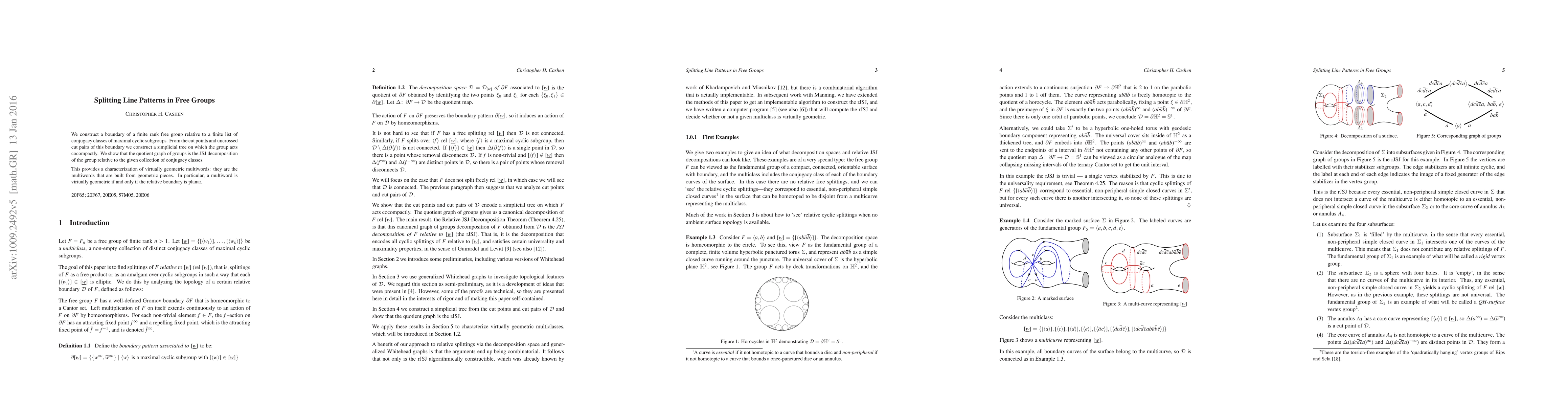 We construct a boundary of a finite rank free group relative to a finite list of conjugacy classes of maximal cyclic subgroups. From the cut points and uncrossed cut pairs of this boundary we construct a simplicial tree on which the group acts cocompactly. We show that the quotient graph of groups is the JSJ decomposition of the group relative to the given collection of conjugacy classes. This provides a characterization of virtually geometric multiwords: they are the multiwords that are built from geometric pieces. In particular, a multiword is virtually geometric if and only if the relative boundary is planar.