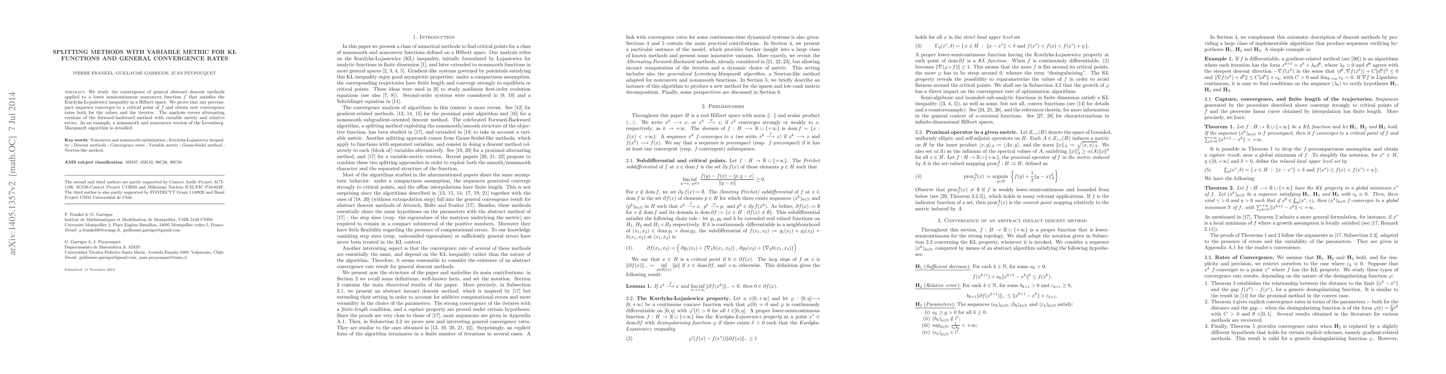 A study on the convergence of abstract descent methods for nonconvex functions that satisfy the Kurdyka-Lojasiewicz inequality, showing faster rates of convergence than previous methods.
