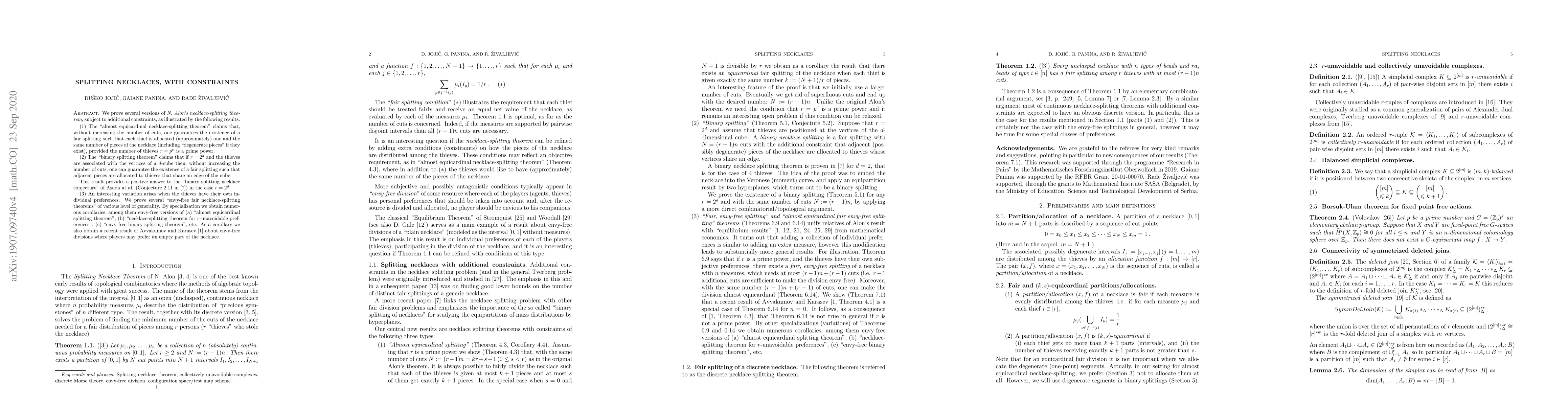 Researchers prove several versions of a necklace-splitting theorem with additional constraints, including fair allocations for thieves under specific conditions, and also address cases where individual preferences play a role.