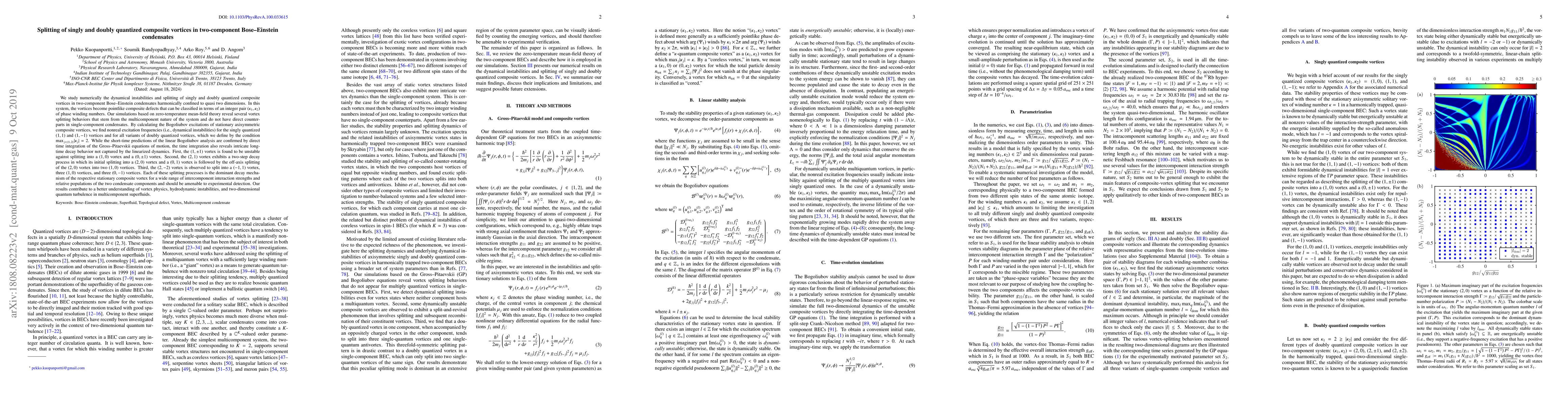 This research numerically investigates the dynamical instabilities and splitting behaviors of composite vortices in two-component Bose-Einstein condensates. It finds distinct vortex decay mechanisms, including the splitting of singly and doubly quantized vortices into multiple pointlike defects, which differ significantly from single-component condensates.