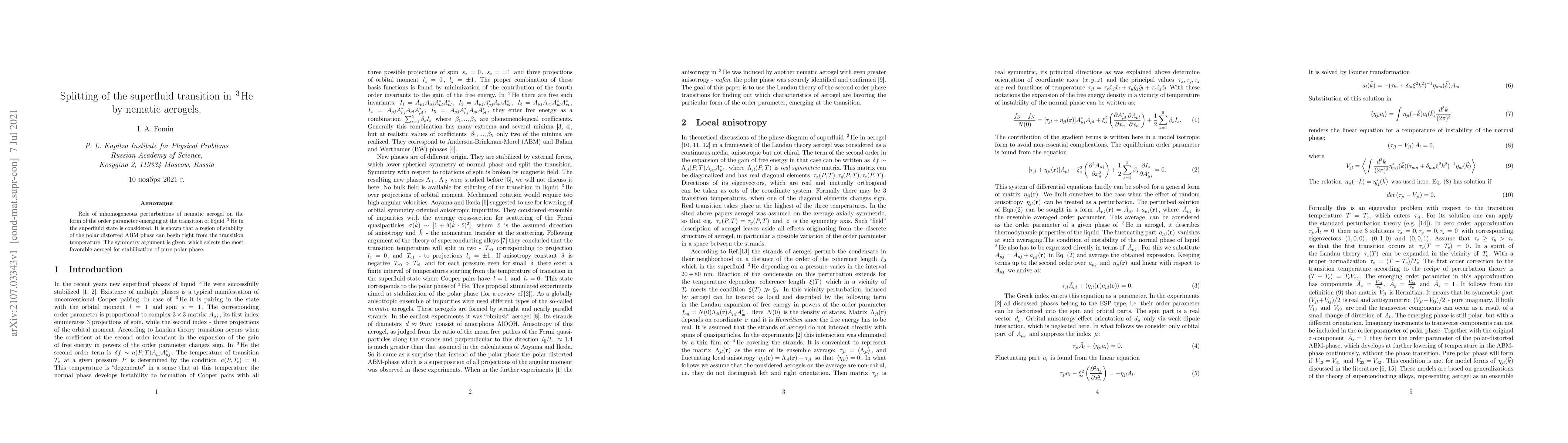 The research explores how nematic aerogels influence the superfluid transition in $^3$He, revealing a stable region for the polar distorted ABM phase emerging directly from the transition temperature. The study uses symmetry arguments to identify the optimal aerogel for stabilizing the pure polar phase.