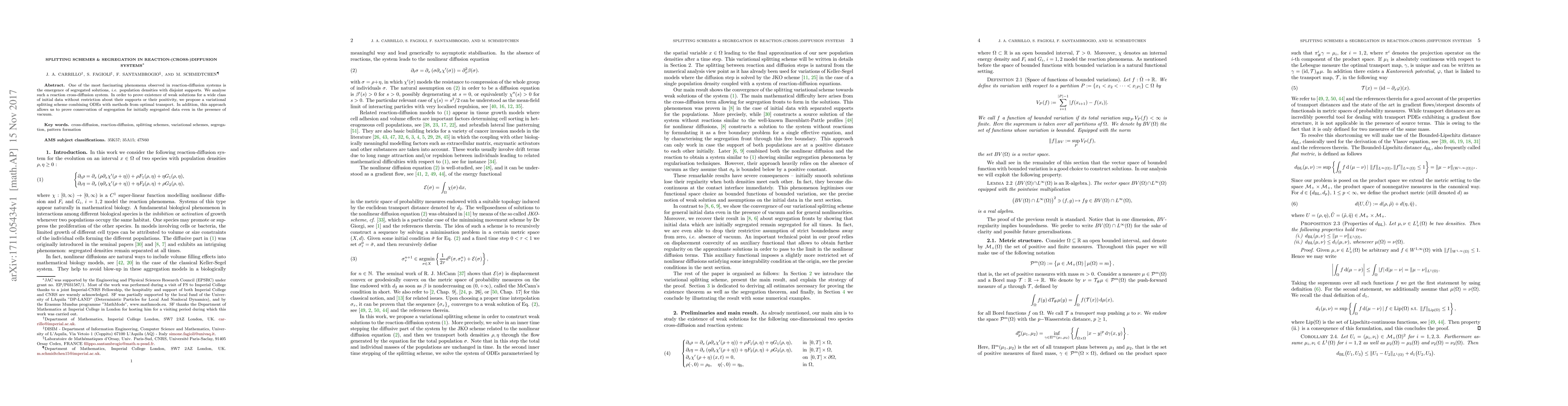 A new method is proposed to study segregation in reaction-diffusion systems, using a variational splitting scheme that combines ordinary differential equations with optimal transport methods, allowing for the existence of weak solutions and conservation of segregation even in the presence of vacuum.