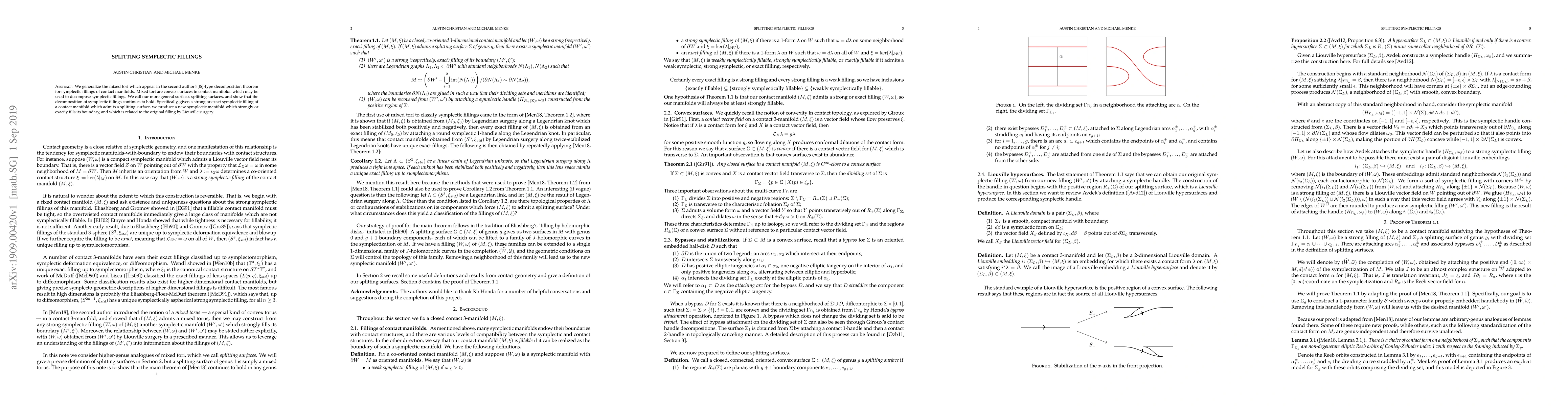 We generalize the mixed tori which appear in the second author's JSJ-type decomposition theorem for symplectic fillings of contact manifolds. Mixed tori are convex surfaces in contact manifolds which may be used to decompose symplectic fillings. We call our more general surfaces splitting surfaces, and show that the decomposition of symplectic fillings continues to hold. Specifically, given a strong or exact symplectic filling of a contact manifold which admits a splitting surface, we produce a new symplectic manifold which strongly or exactly fills its boundary, and which is related to the original filling by Liouville surgery.