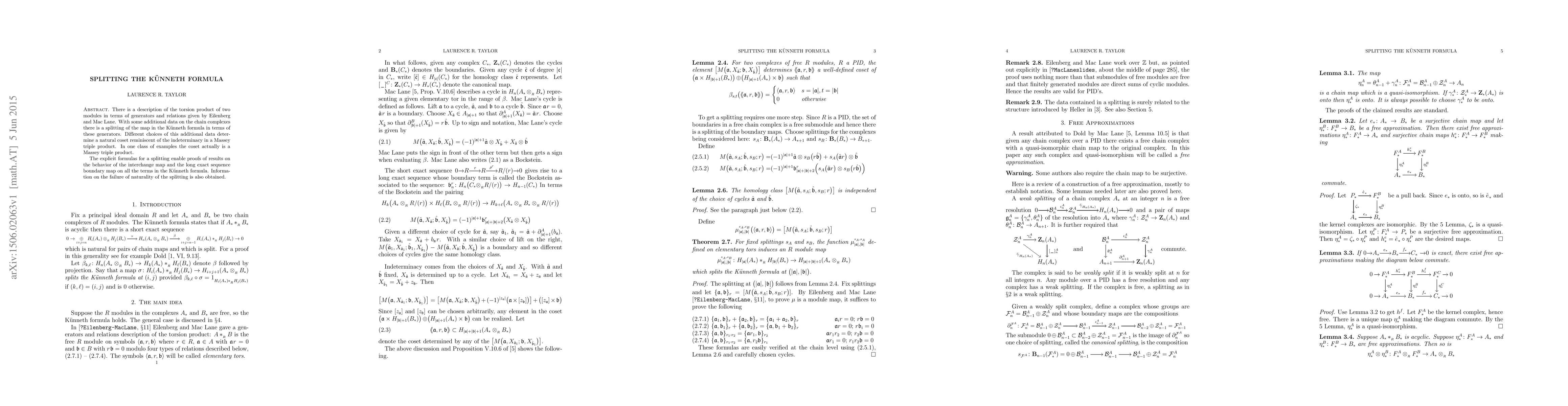 Research explores a new way to split a mathematical formula known as the Kunneth formula, providing insights into its behavior and applications in algebraic topology.