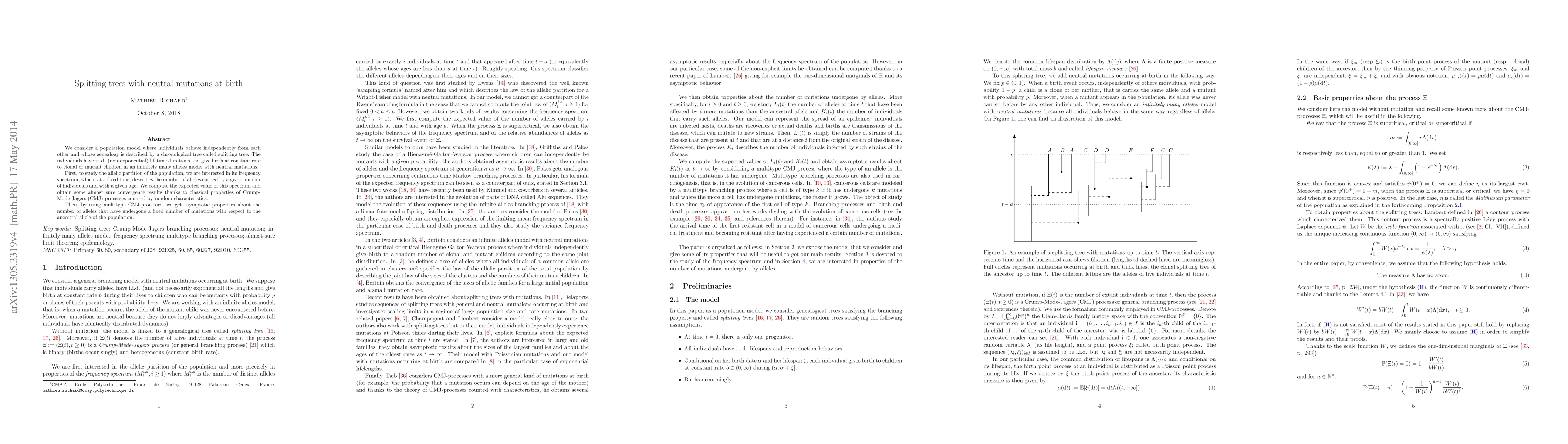This research paper studies a population model where individuals give birth to children with neutral mutations at constant rates. It investigates the frequency spectrum of alleles in the population over time, focusing on how many alleles have undergone a fixed number of mutations from their ancestral allele.