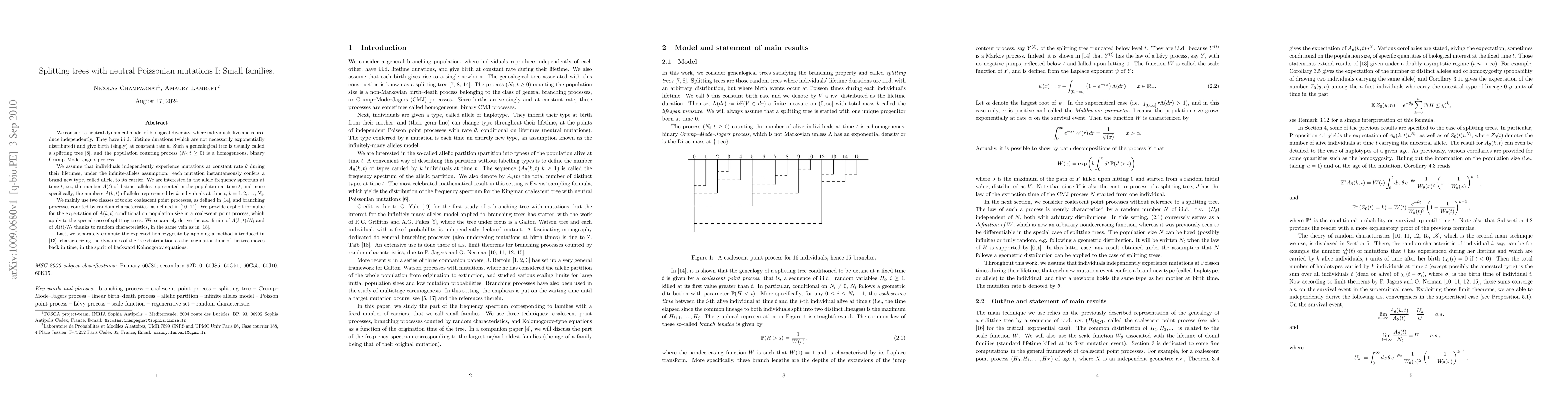 This paper studies a neutral model of biological diversity where individuals reproduce independently, experiencing Poissonian mutations. The focus is on the allele frequency spectrum, providing explicit formulae for the expected number of alleles represented by k individuals and deriving limits for allele frequency relative to population size.