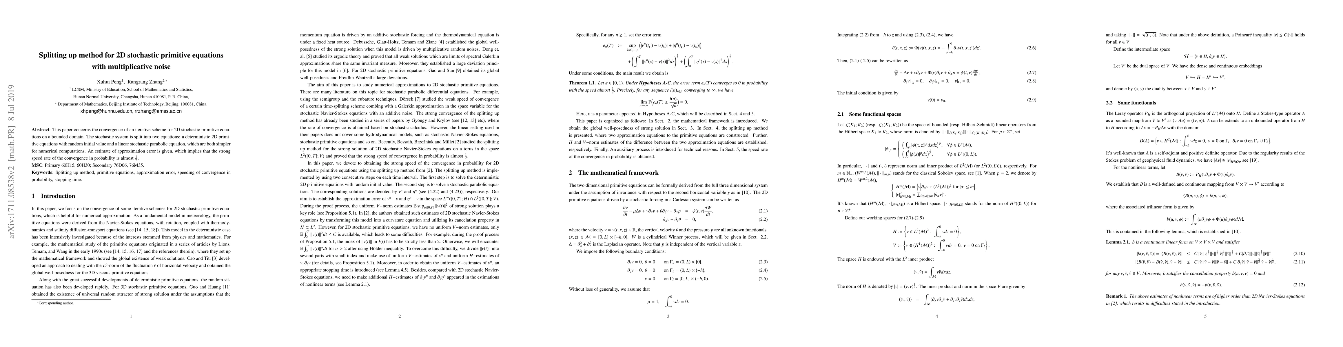 This paper concerns the convergence of an iterative scheme for 2D stochastic primitive equations on a bounded domain. The stochastic system is split into two equations: a deterministic 2D primitive equations with random initial value and a linear stochastic parabolic equation, which are both simpler for numerical computations. An estimate of approximation error is given, which implies that the strong speed rate of the convergence in probability is almost $\frac{1}{2}$.