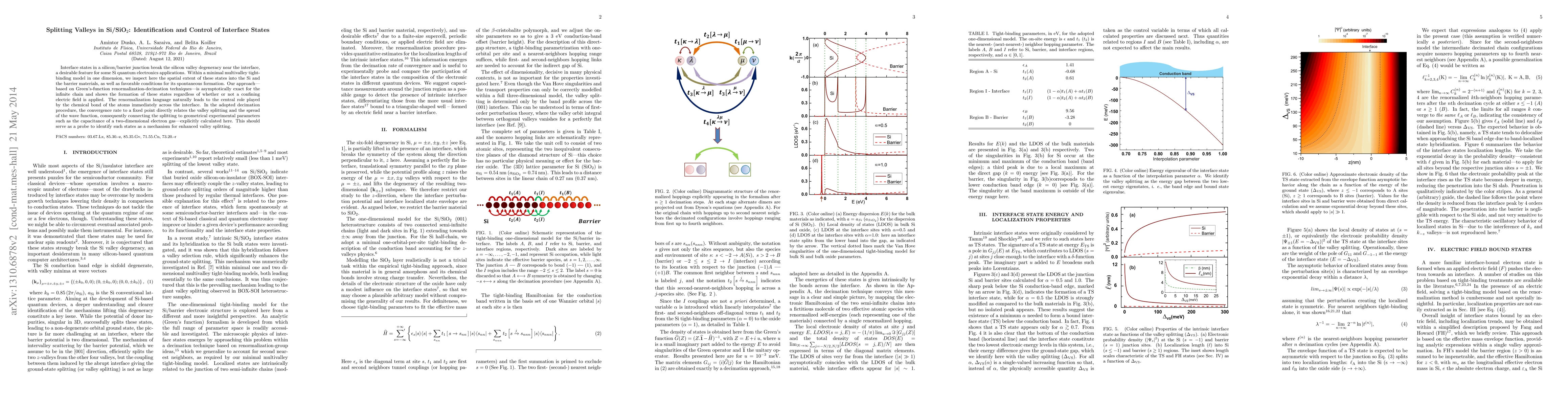 This paper investigates interface states in silicon/barrier junctions that break silicon valley degeneracy, crucial for Si quantum electronics. Using Green's-function renormalization techniques, the study reveals the spontaneous formation of these states, emphasizing the role of atomic chemical bonds across the interface and linking valley splitting to measurable parameters like capacitance.
