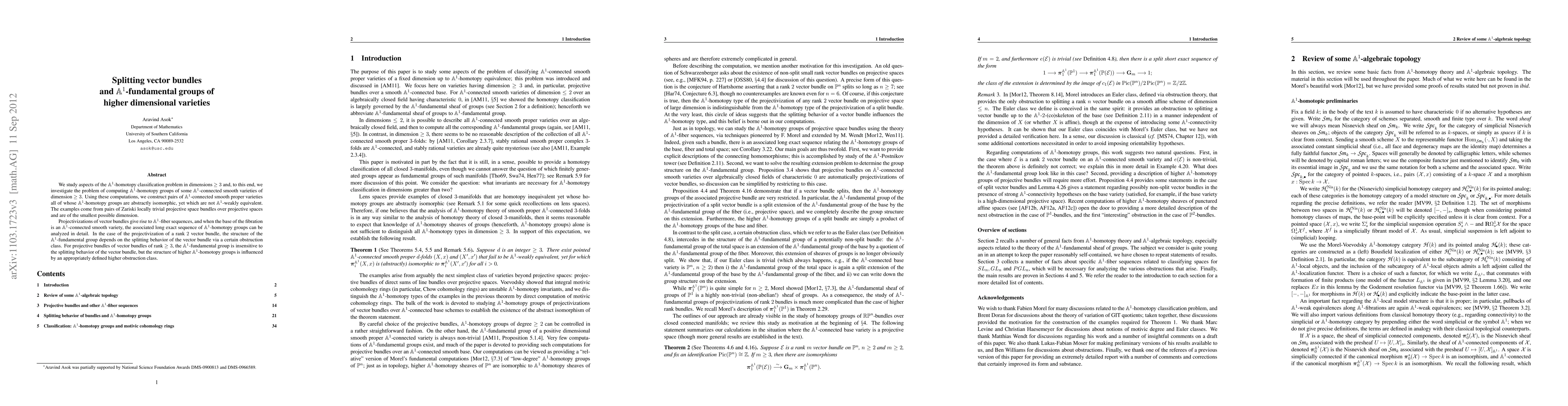 We study aspects of the A^1-homotopy classification problem in dimensions >= 3 and, to this end, we investigate the problem of computing A^1-homotopy groups of some A^1-connected smooth varieties of dimension >=. Using these computations, we construct pairs of A^1-connected smooth proper varieties all of whose A^1-homotopy groups are abstractly isomorphic, yet which are not A^1-weakly equivalent. The examples come from pairs of Zariski locally trivial projective space bundles over projective spaces and are of the smallest possible dimension. Projectivizations of vector bundles give rise to A^1-fiber sequences, and when the base of the fibration is an A^1-connected smooth variety, the associated long exact sequence of A^1-homotopy groups can be analyzed in detail. In the case of the projectivization of a rank 2 vector bundle, the structure of the A^1-fundamental group depends on the splitting behavior of the vector bundle via a certain obstruction class. For projective bundles of vector bundles of rank >=, the A^1-fundamental group is insensitive to the splitting behavior of the vector bundle, but the structure of higher A^1-homotopy groups is influenced by an appropriately defined higher obstruction class.